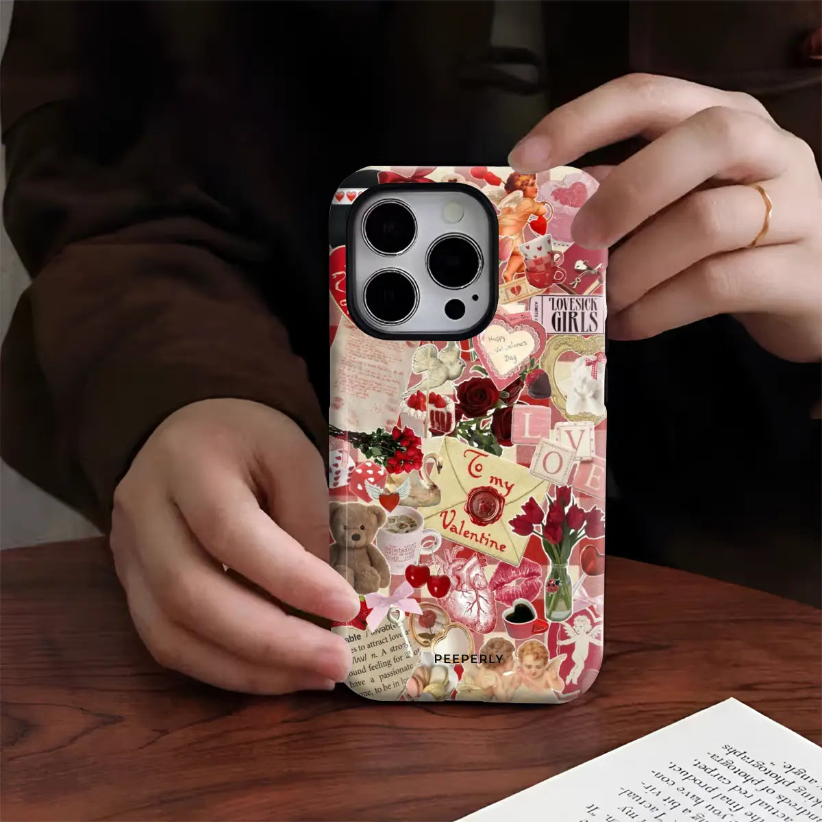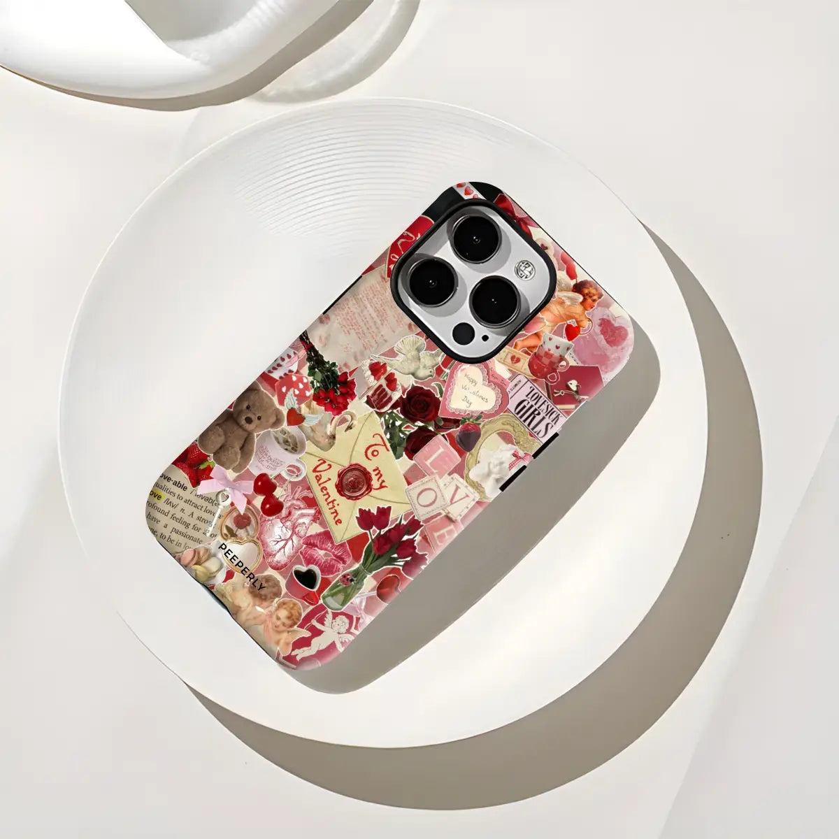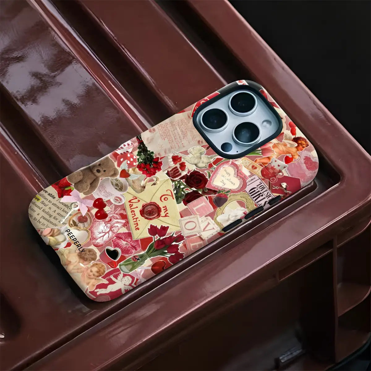 A charming collage of vintage love notes, roses, hearts, and soft blush tones that feels like flipping through a cherished scrapbook. This design blends old-world romance with cozy warmth, perfect for those who adore timeless aesthetics and sentimental details.