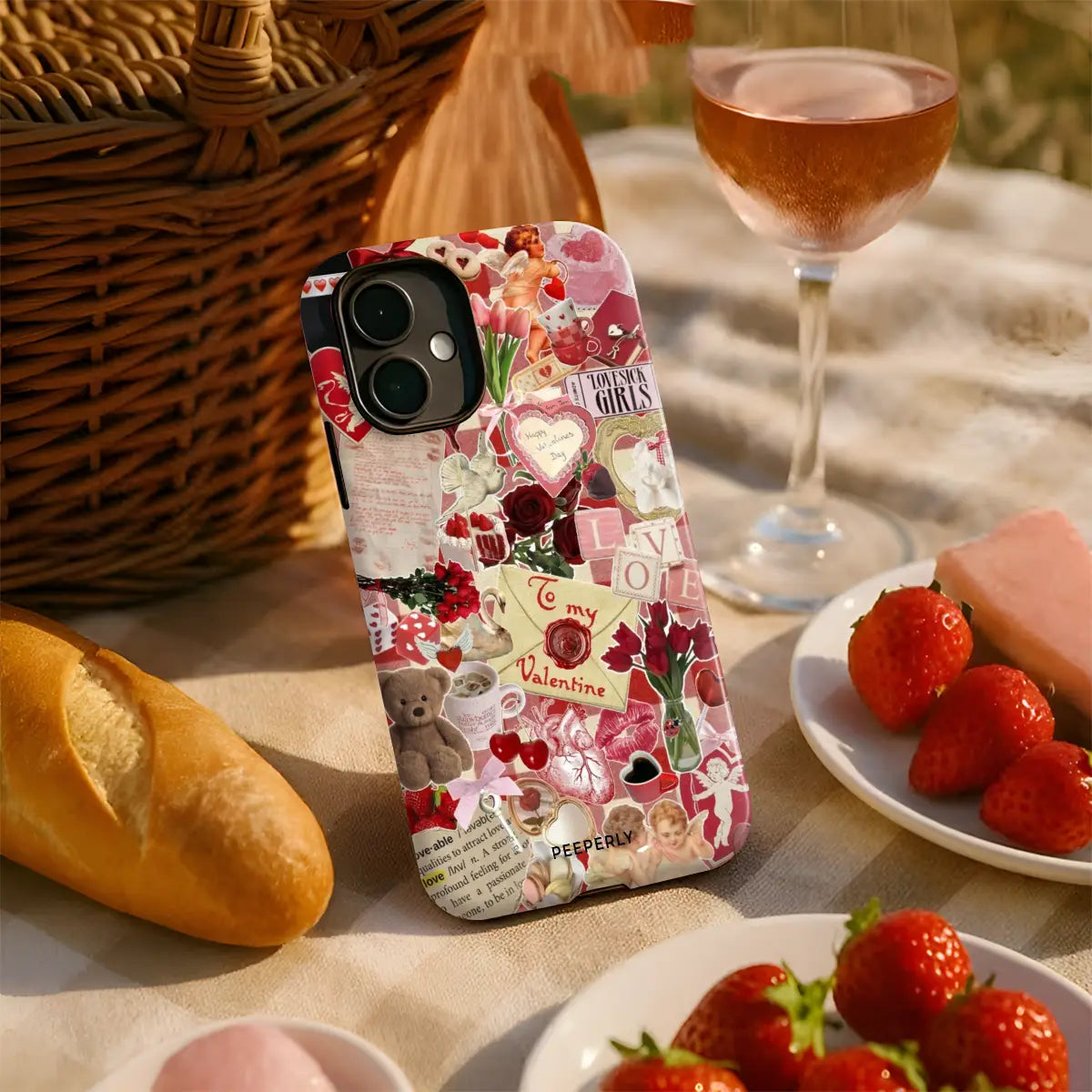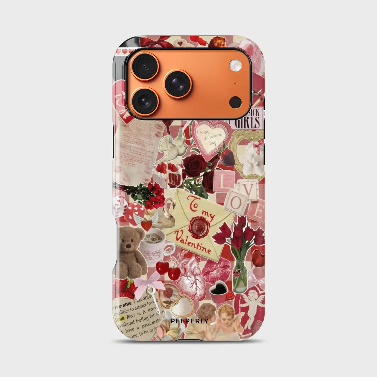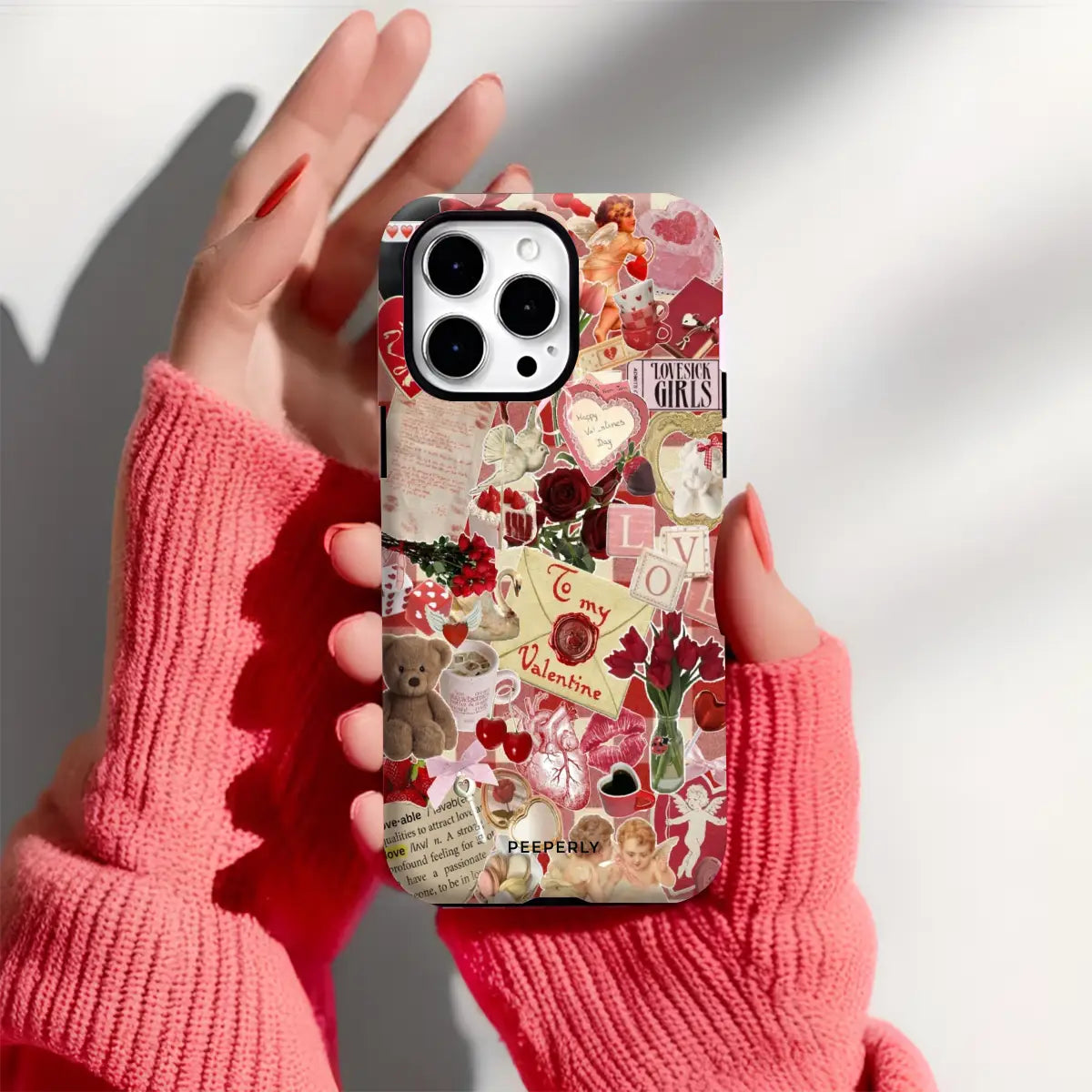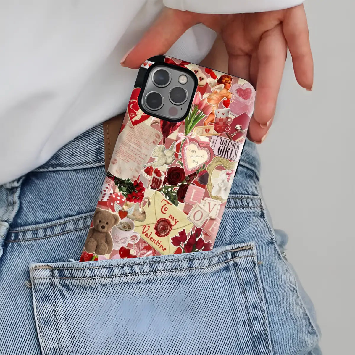 A charming collage of vintage love notes, roses, hearts, and soft blush tones that feels like flipping through a cherished scrapbook. This design blends old-world romance with cozy warmth, perfect for those who adore timeless aesthetics and sentimental details.
