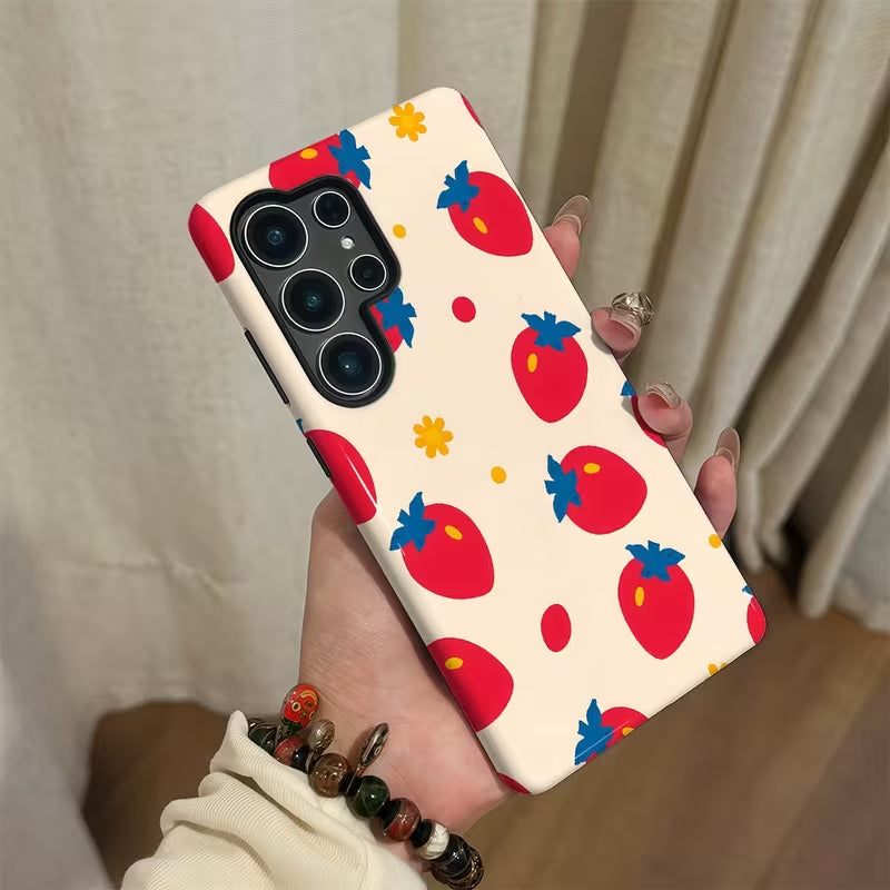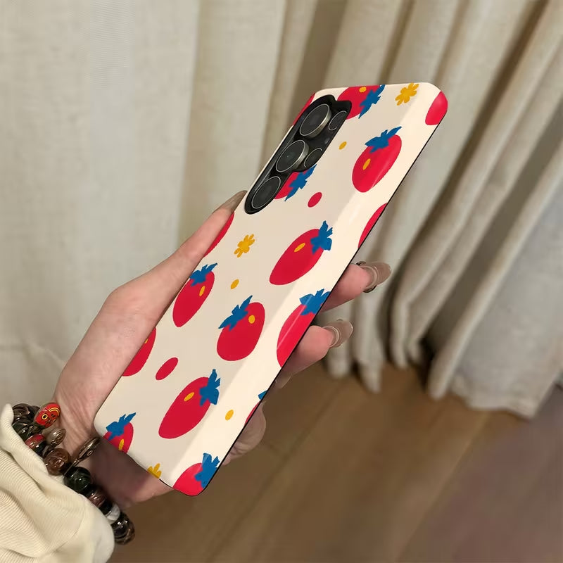 Bring a burst of joy to your phone with the Sweet Sprinkles Case — a playful, vibrant design featuring cute strawberry illustrations sprinkled across a soft pastel background. This case adds the perfect blend of charm and personality to your device while offering everyday protection.