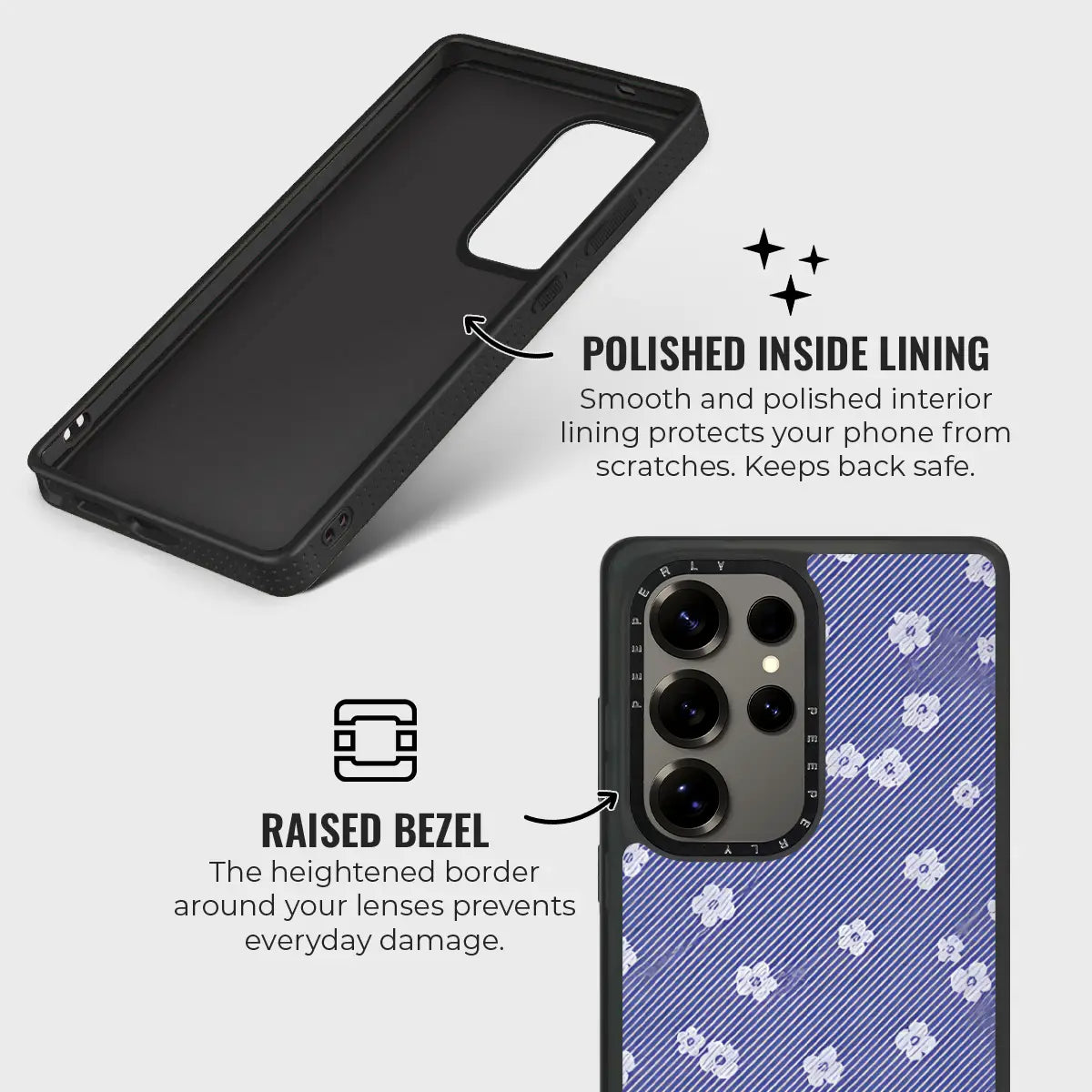 - Polished Inner Lining: Smooth lining shields the phone’s back from scratches.