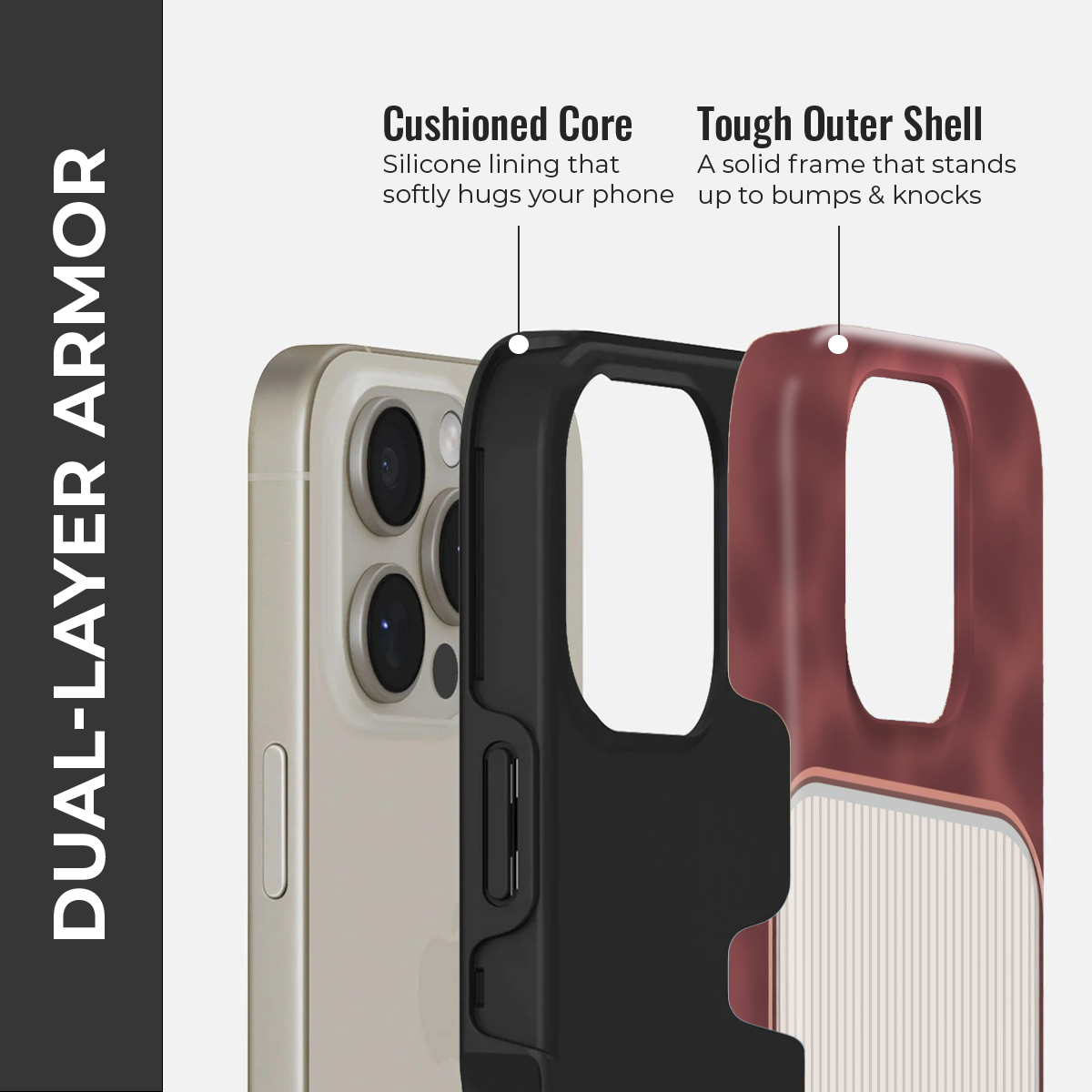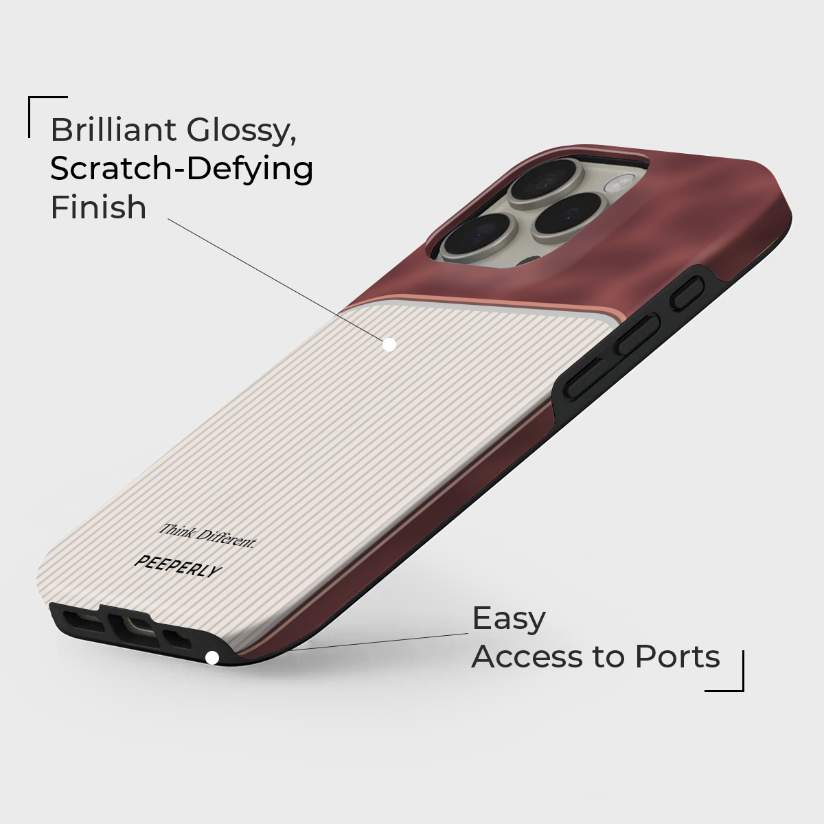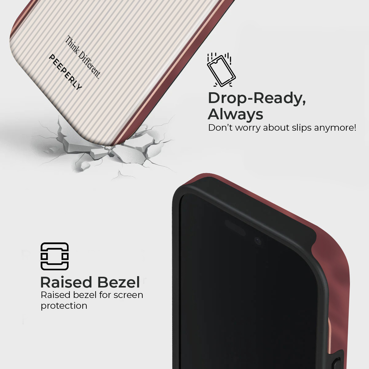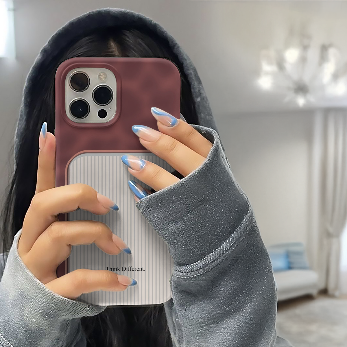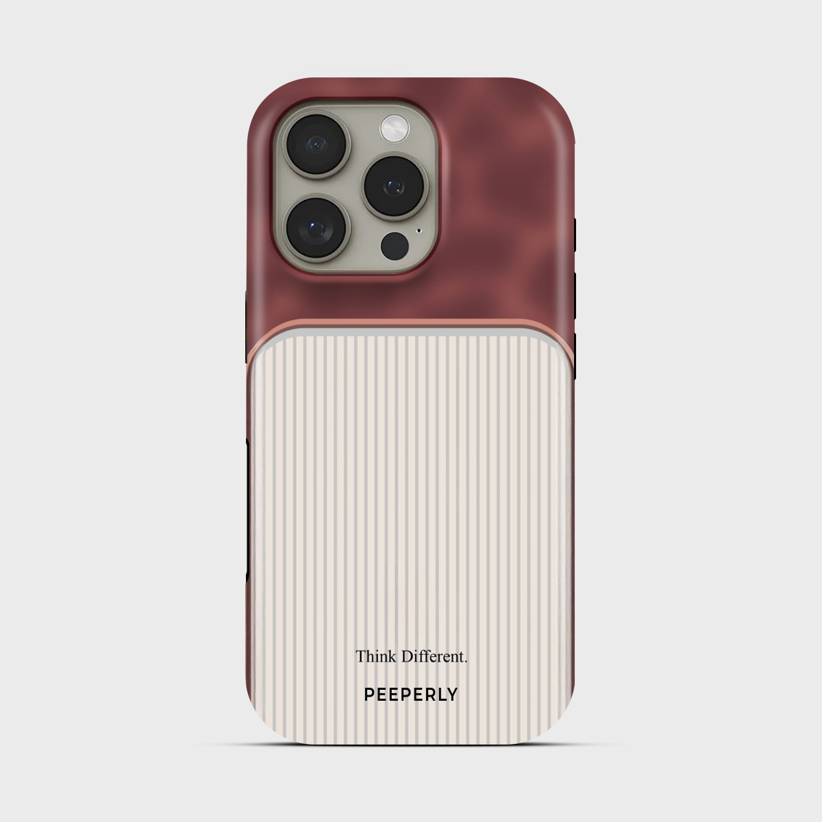 The Think Different case celebrates innovation and individuality — inspired by the spirit of creativity that dares to challenge the norm. Its dual-tone design blends a refined rose-gold metallic finish with a soft ivory striped texture, symbolizing the harmony between bold thinking and classic elegance.