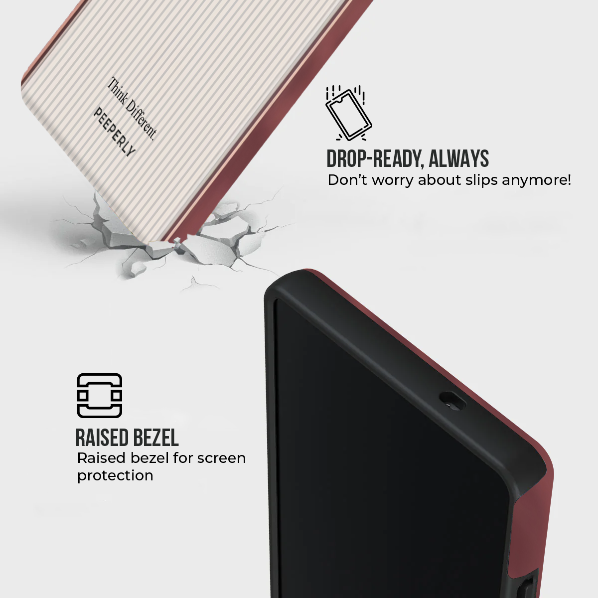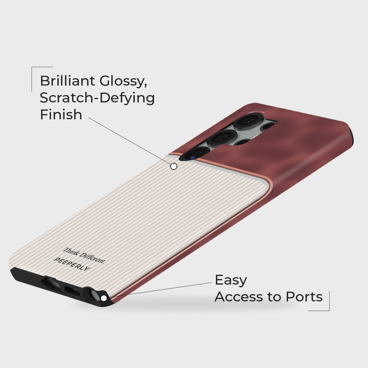 The Think Different case celebrates innovation and individuality — inspired by the spirit of creativity that dares to challenge the norm. Its dual-tone design blends a refined rose-gold metallic finish with a soft ivory striped texture, symbolizing the harmony between bold thinking and classic elegance.