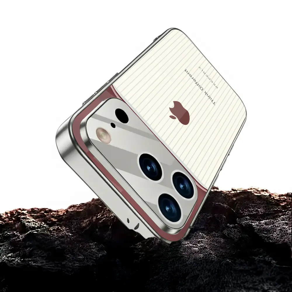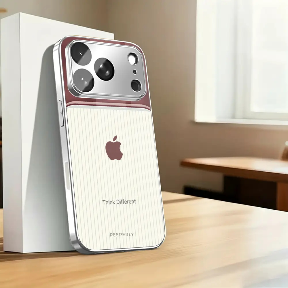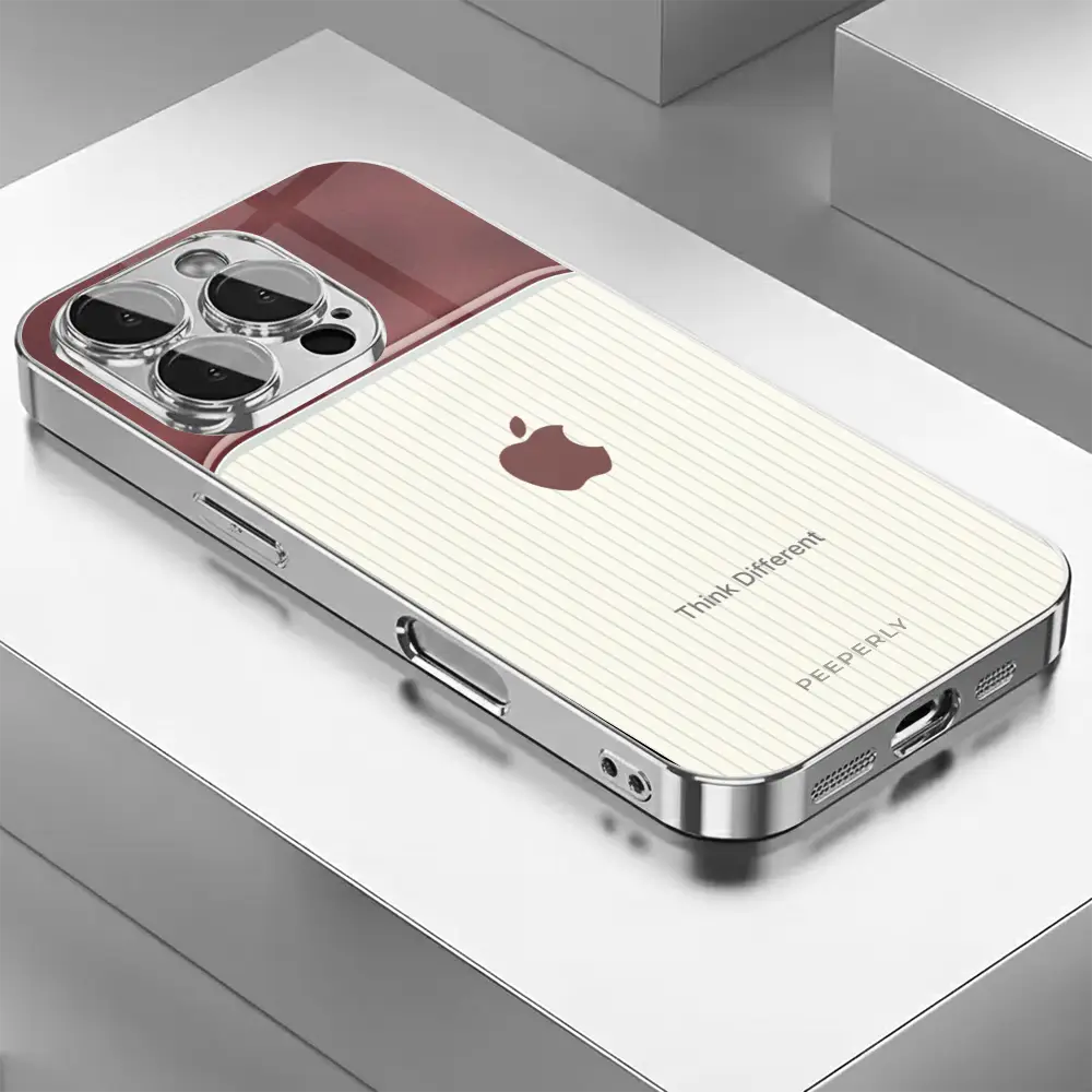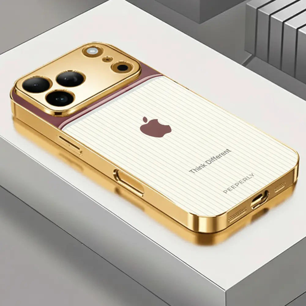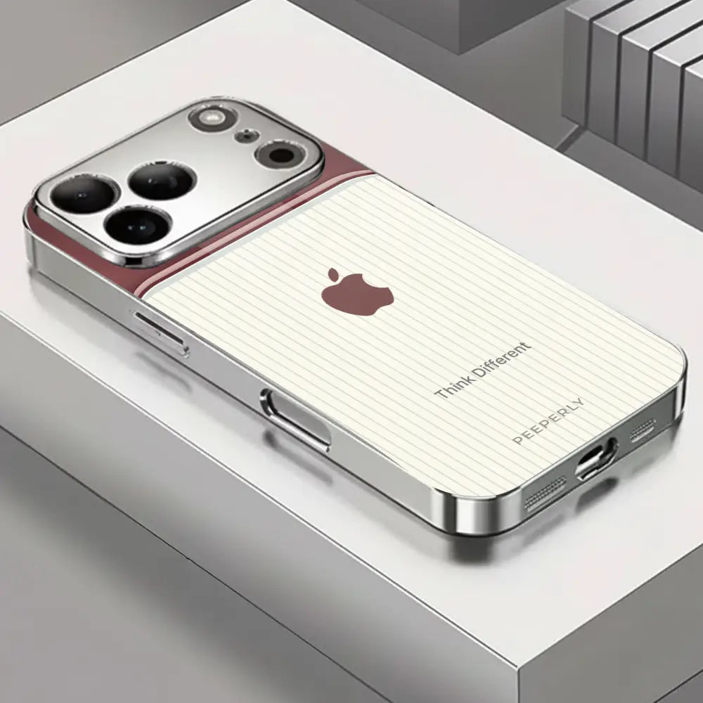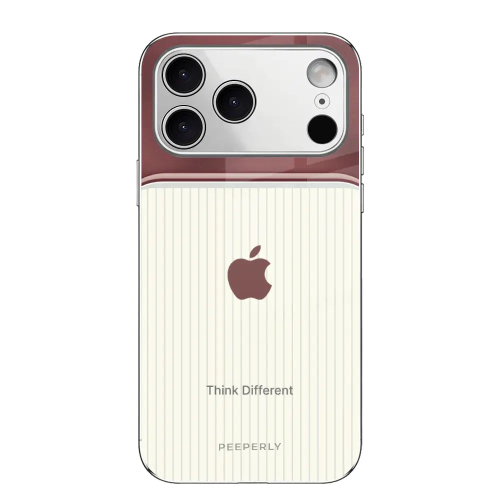 The Think Different case celebrates innovation and individuality — inspired by the spirit of creativity that dares to challenge the norm. Its dual-tone design blends a refined rose-gold metallic finish with a soft ivory striped texture, symbolizing the harmony between bold thinking and classic elegance.