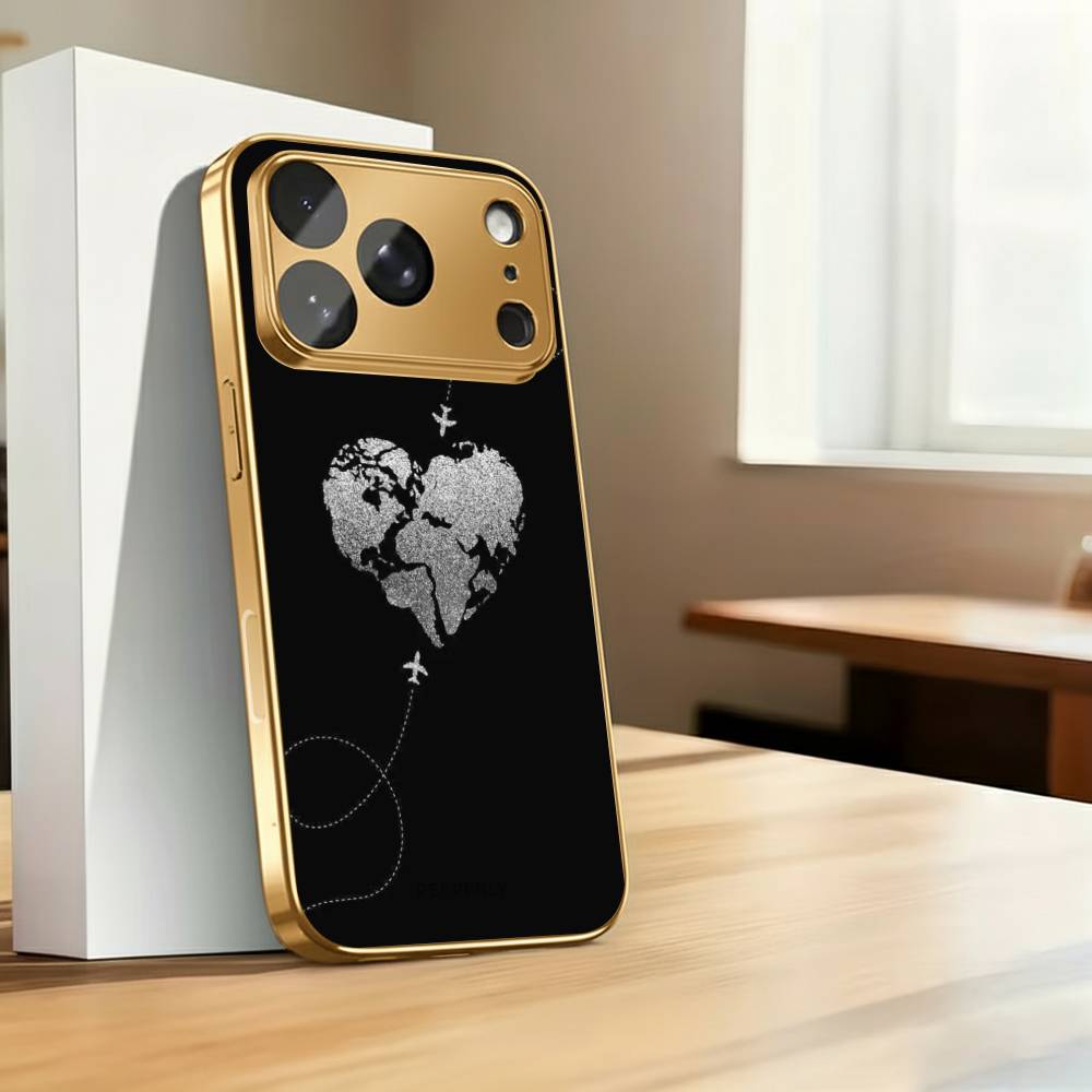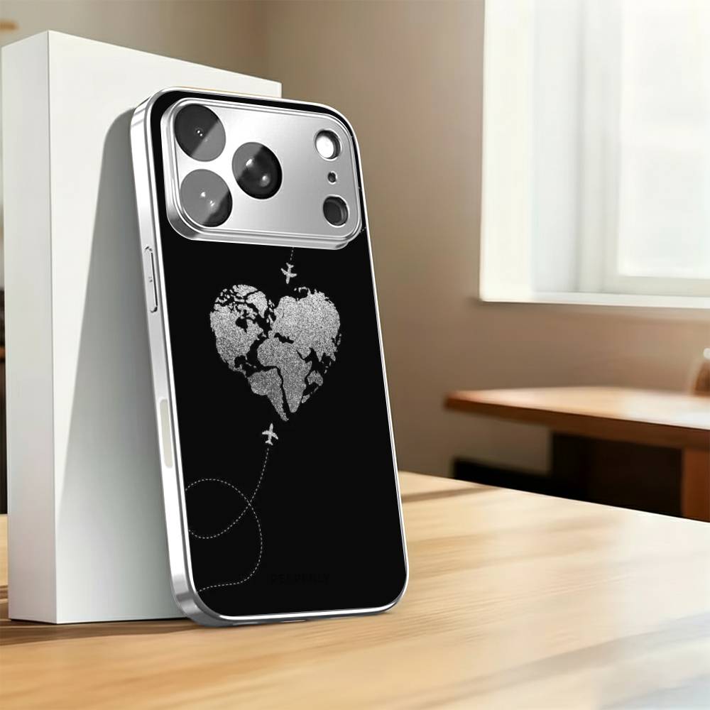 Celebrate your wanderlust with the Travel Love Journey case — a stylish tribute to those who carry the world in their heart. Featuring a shimmering world-map heart and a charming airplane trail looping across the design, this case captures the essence of adventure, connection, and endless exploration.