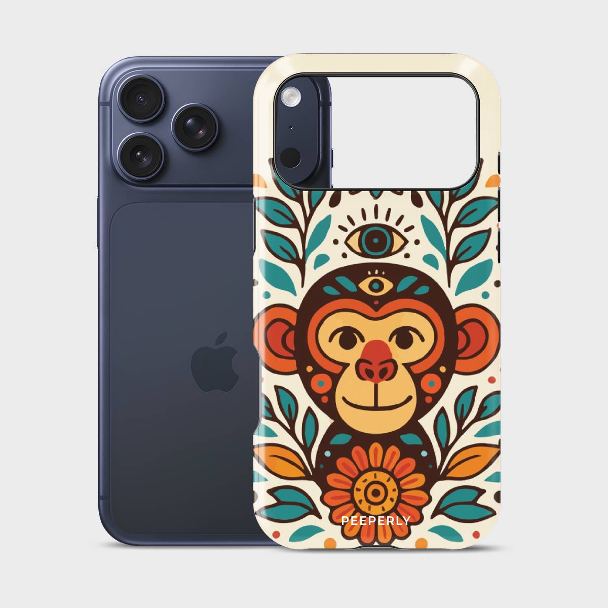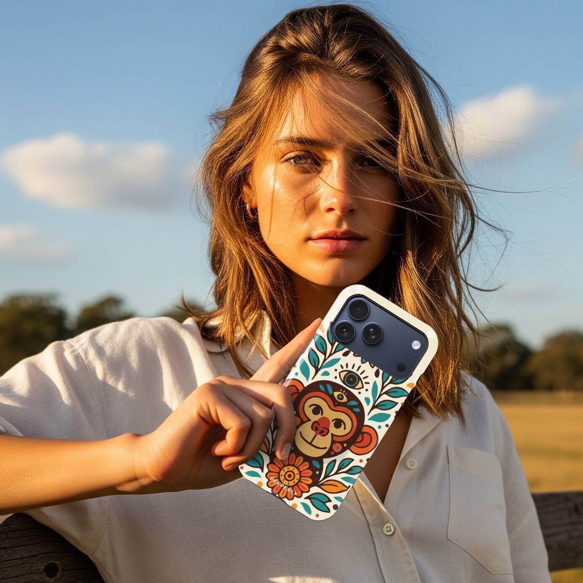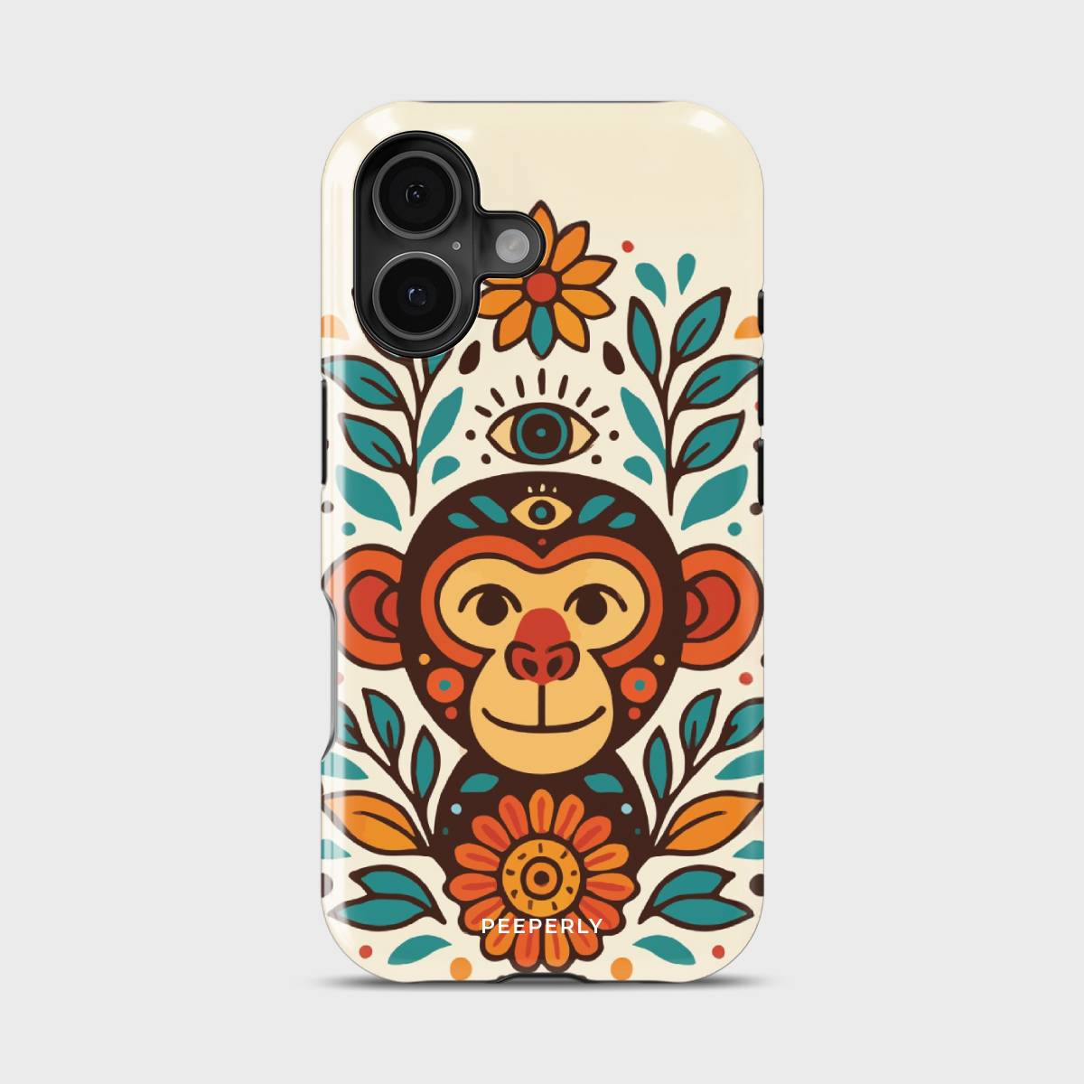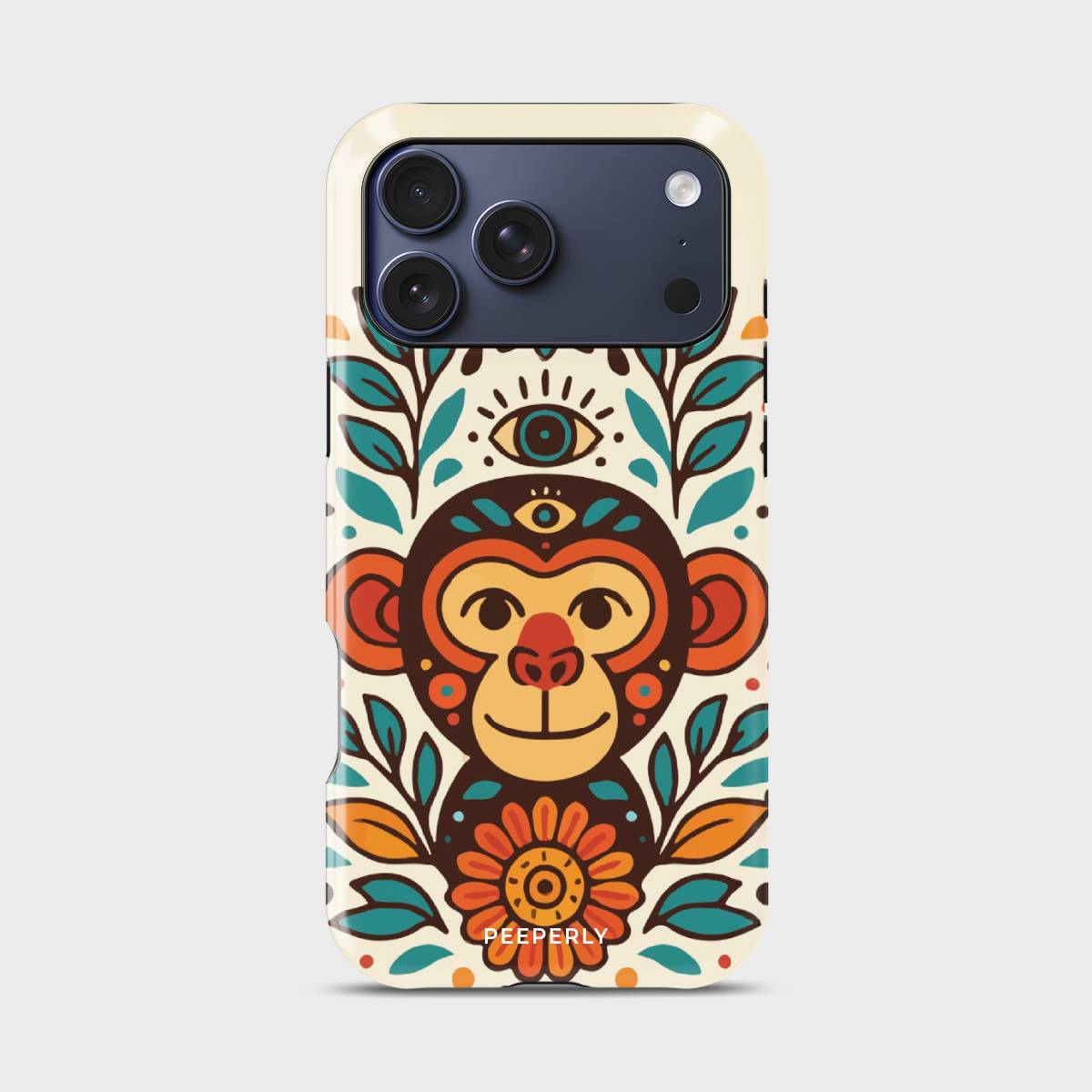 Step into a world of color, culture, and character with Tribal Wink — a phone case that fuses folk-art charm with a dash of cheeky personality. Featuring a vibrant, stylized monkey at its center — complete with a playful expression and a symbolic third eye — this case radiates good vibes, curiosity, and creativity.