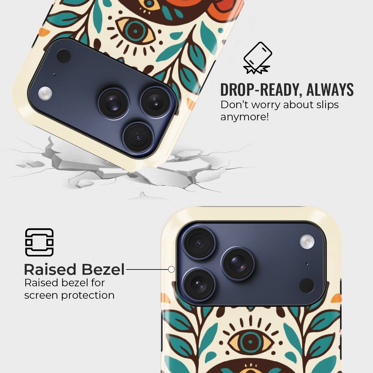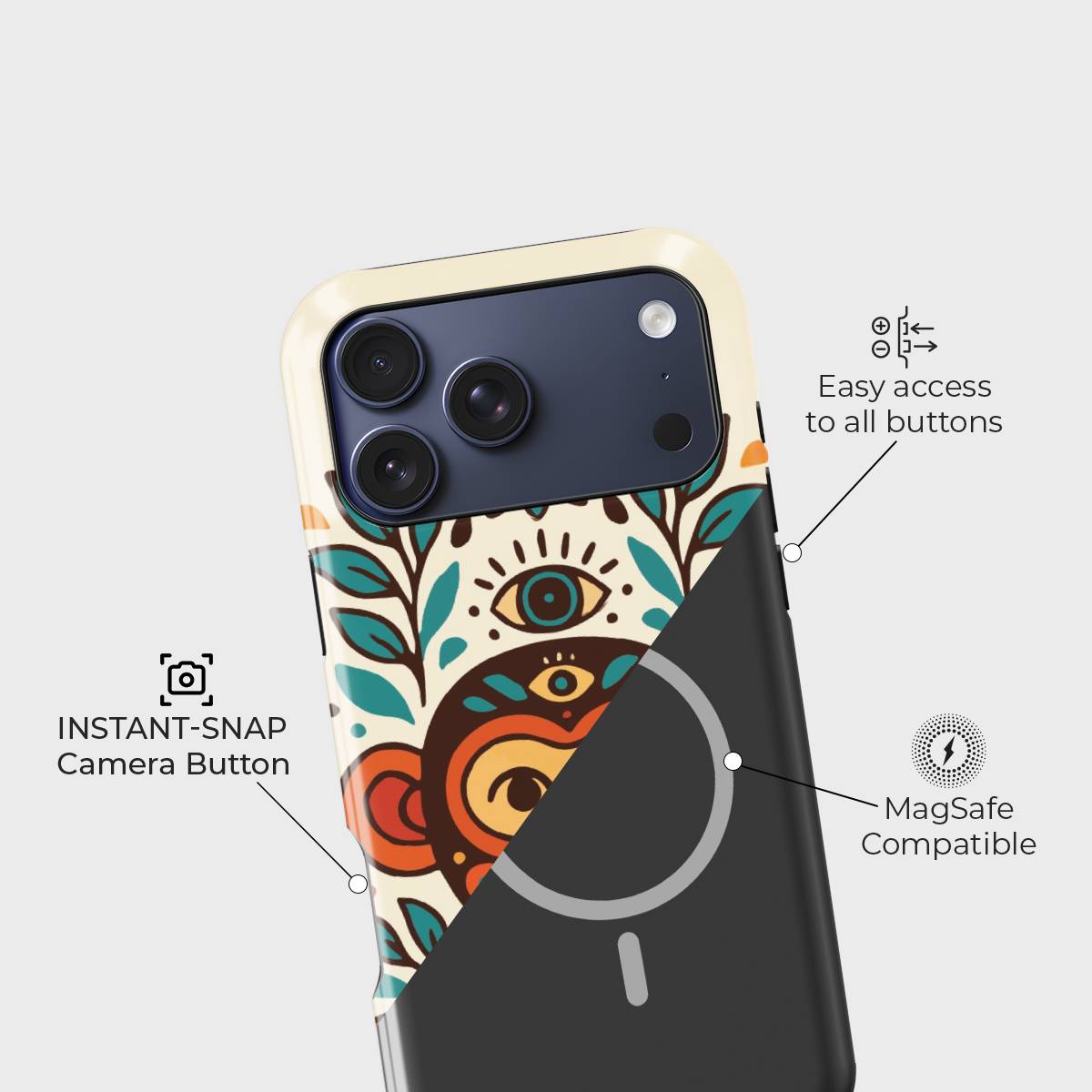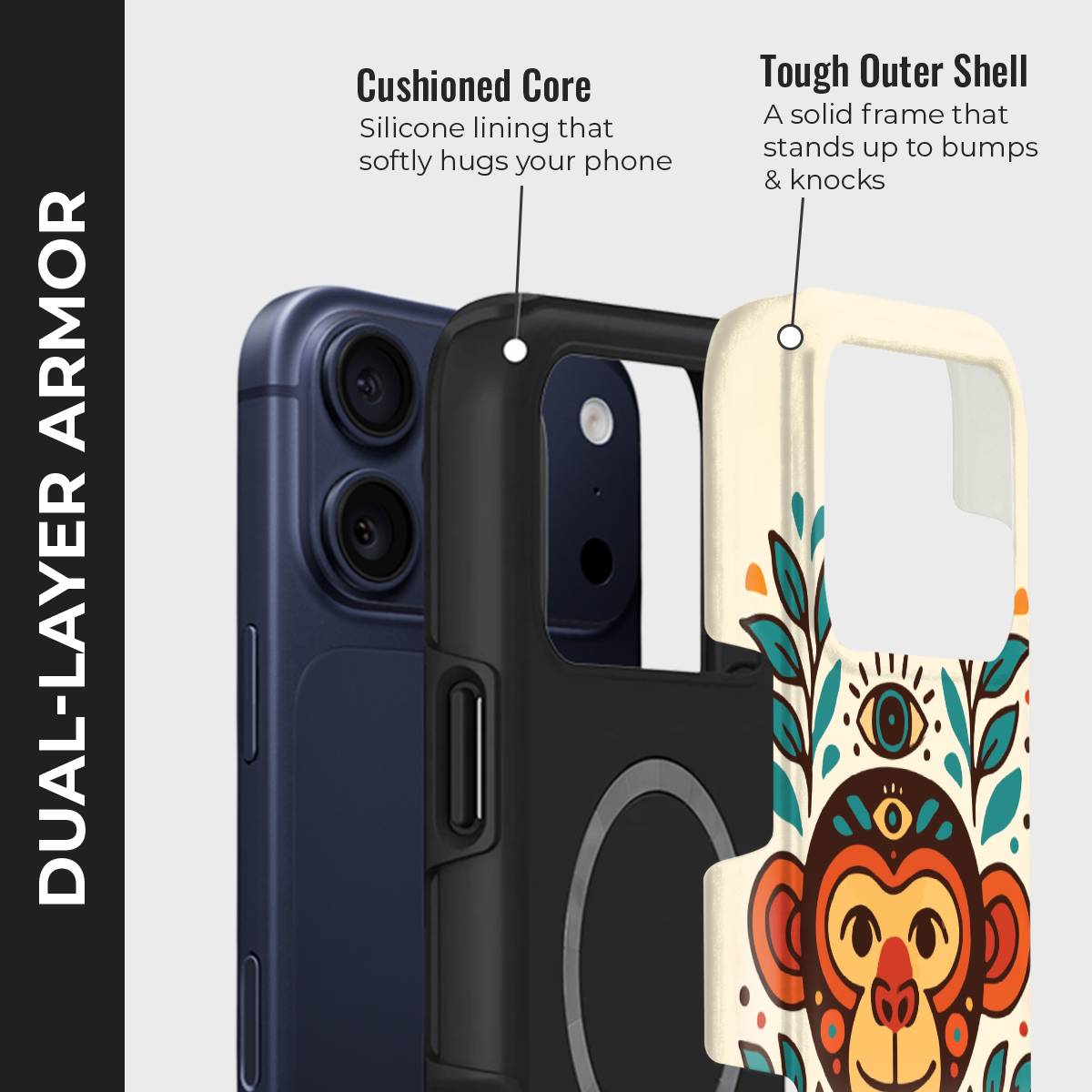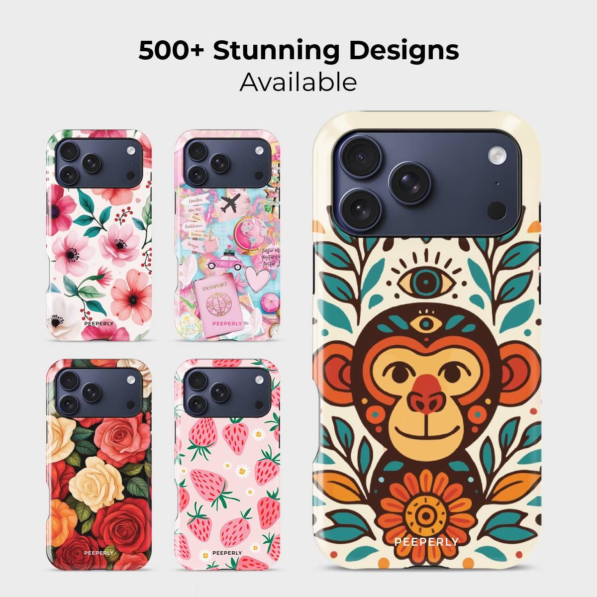 Step into a world of color, culture, and character with Tribal Wink — a phone case that fuses folk-art charm with a dash of cheeky personality. Featuring a vibrant, stylized monkey at its center — complete with a playful expression and a symbolic third eye — this case radiates good vibes, curiosity, and creativity.