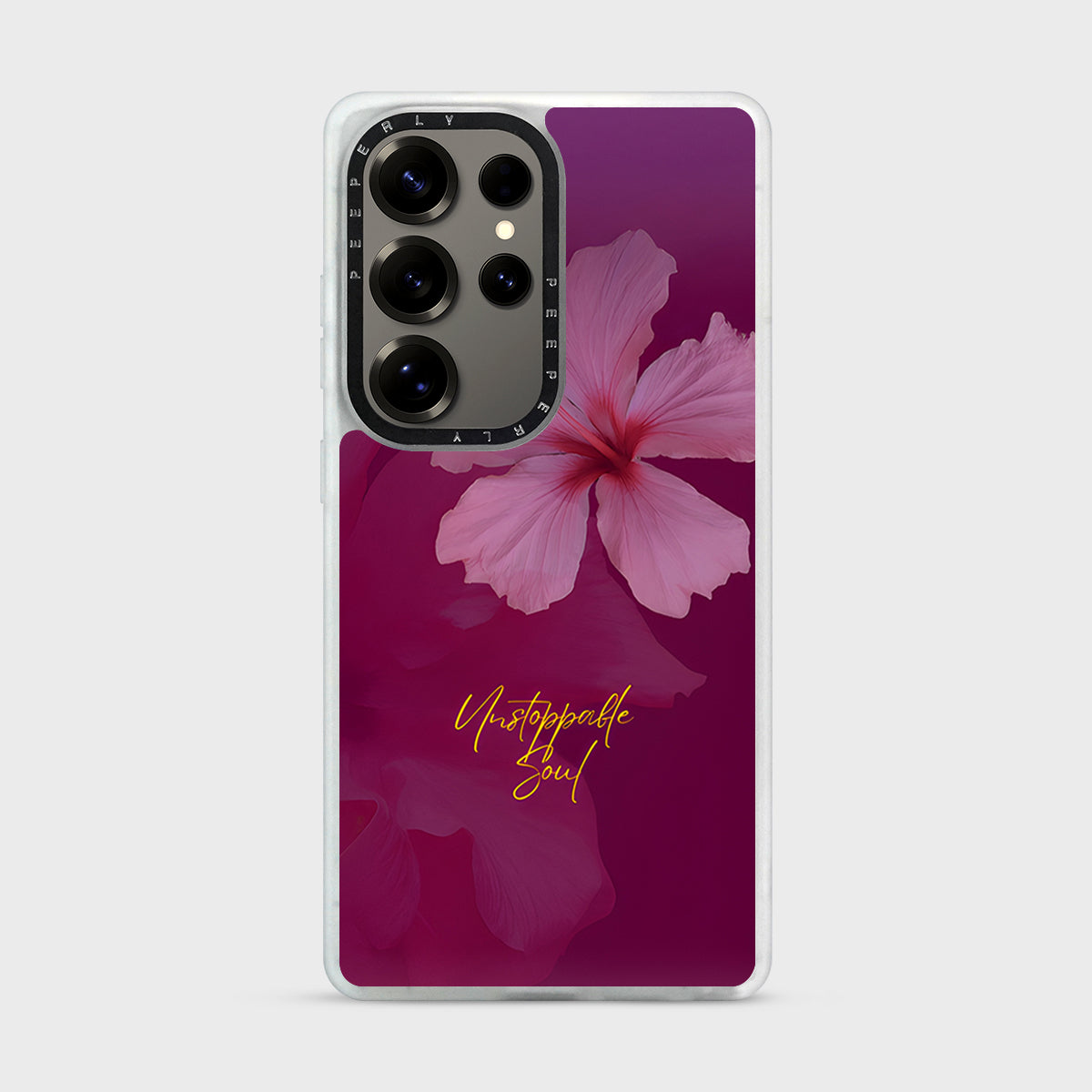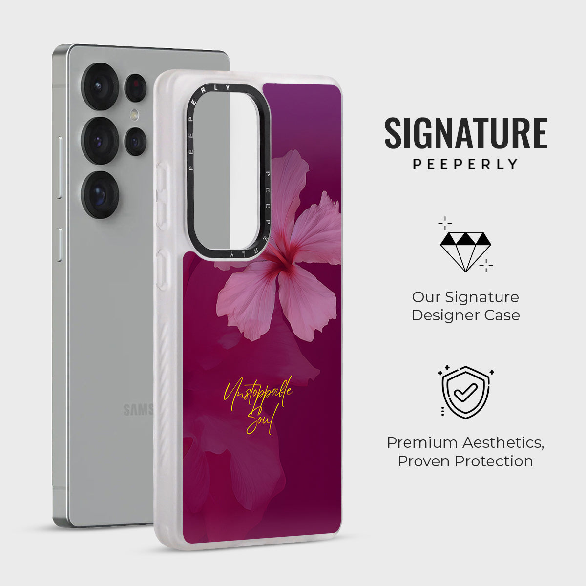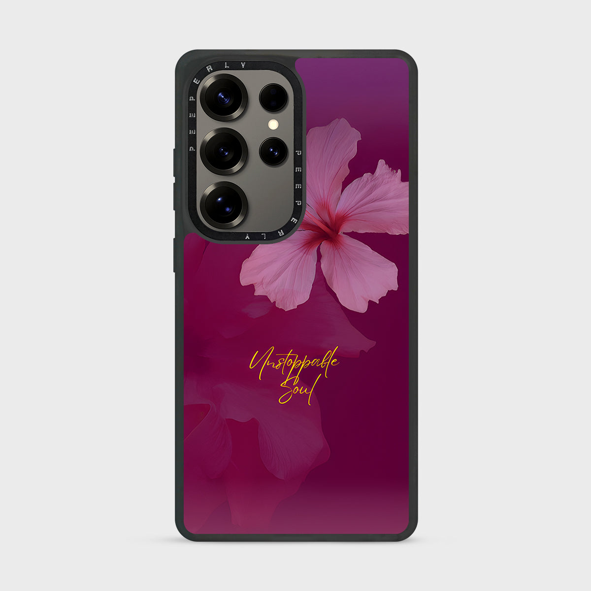 Unstoppable Soul embodies inner strength and quiet confidence—golden script glowing against a rich magenta backdrop, softened by flowing floral forms. The design symbolizes resilience, self-belief, and empowerment, serving as a bold yet elegant reminder of unwavering spirit and purpose.