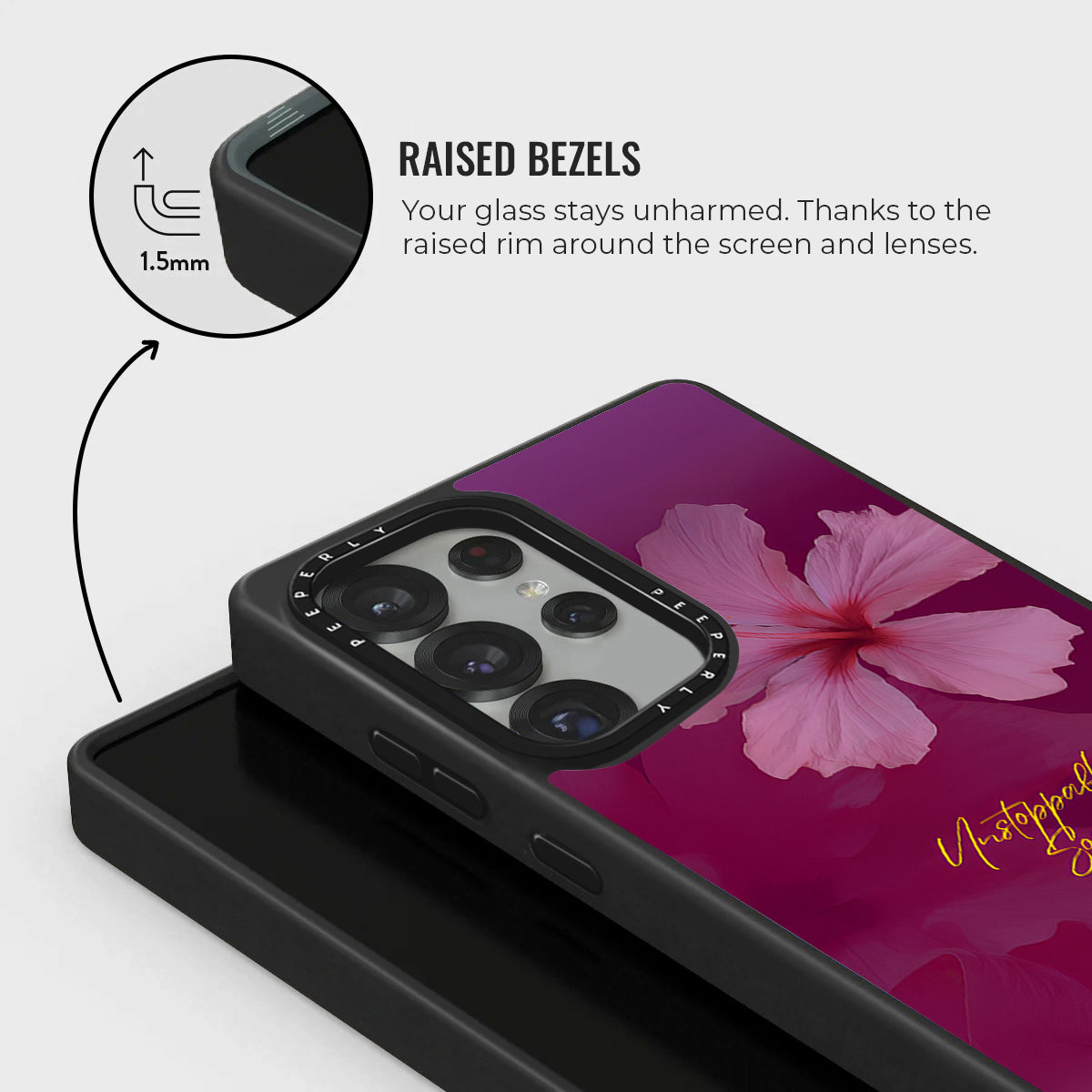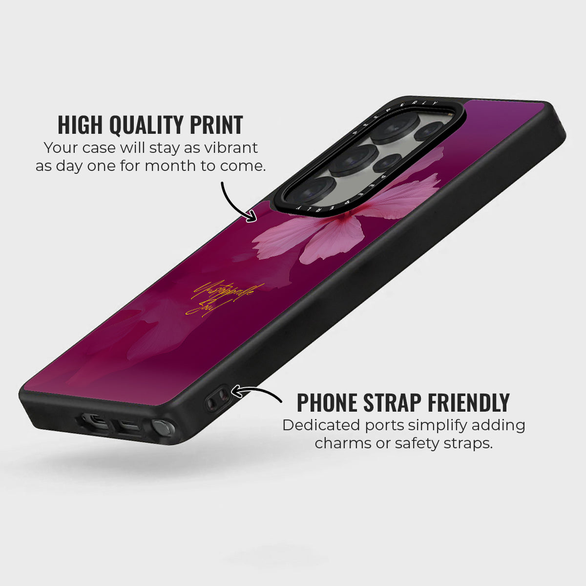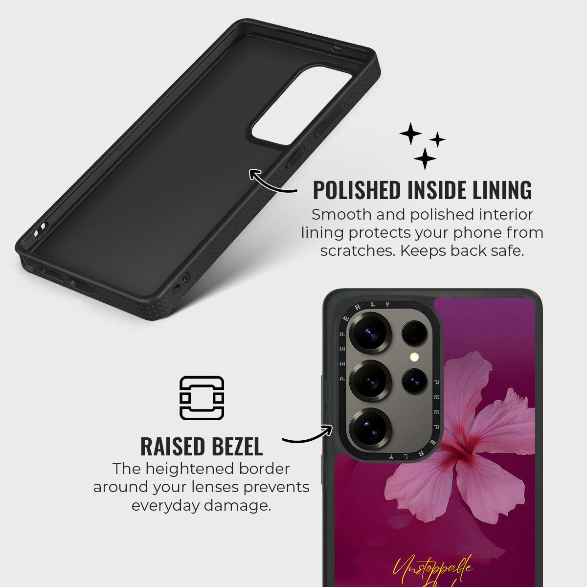 Unstoppable Soul embodies inner strength and quiet confidence—golden script glowing against a rich magenta backdrop, softened by flowing floral forms. The design symbolizes resilience, self-belief, and empowerment, serving as a bold yet elegant reminder of unwavering spirit and purpose.