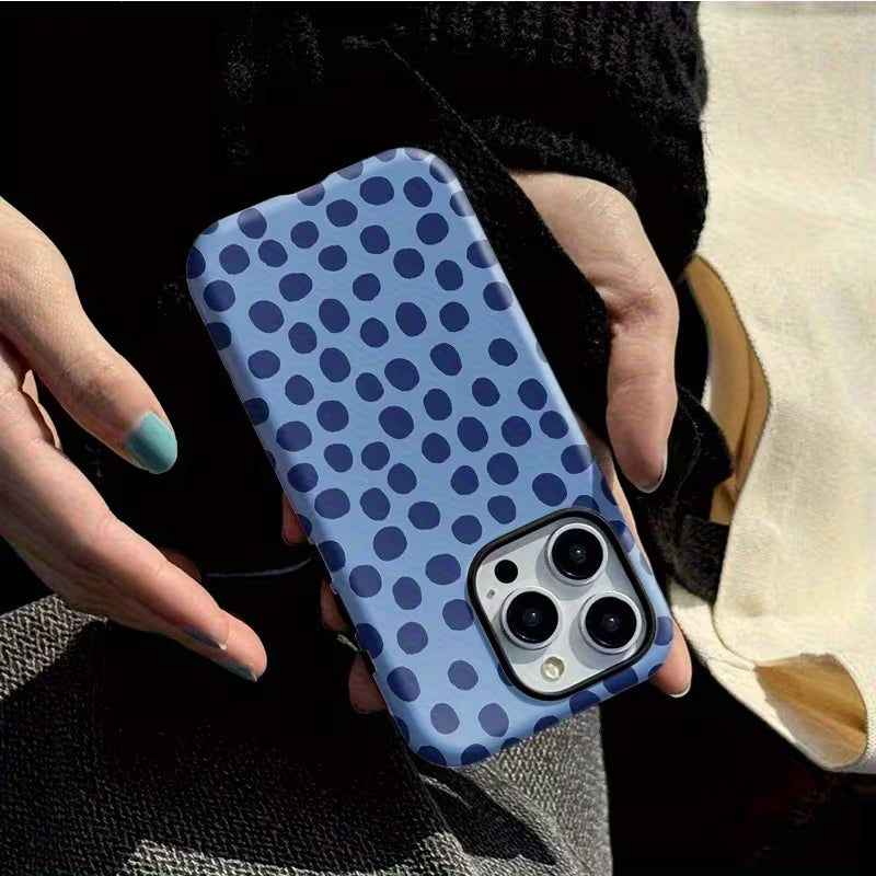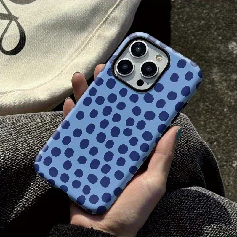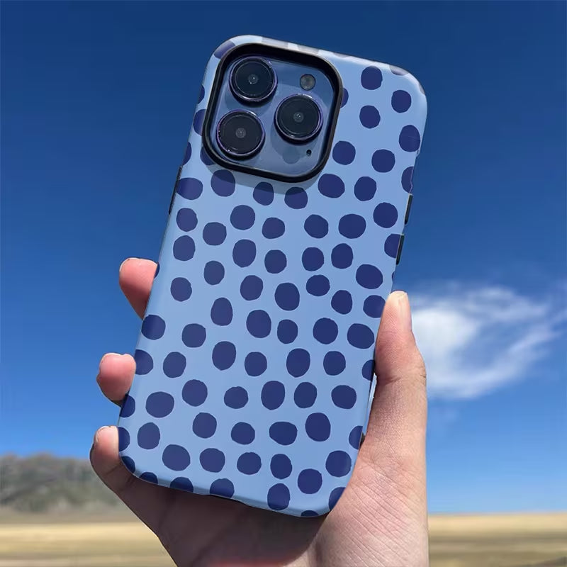 Urban Polka blends playful pattern with modern simplicity. Deep blue polka dots set against a cool-toned backdrop create a clean, stylish look that feels both fun and contemporary. Effortlessly chic and easygoing, this case adds a touch of personality to everyday urban style.