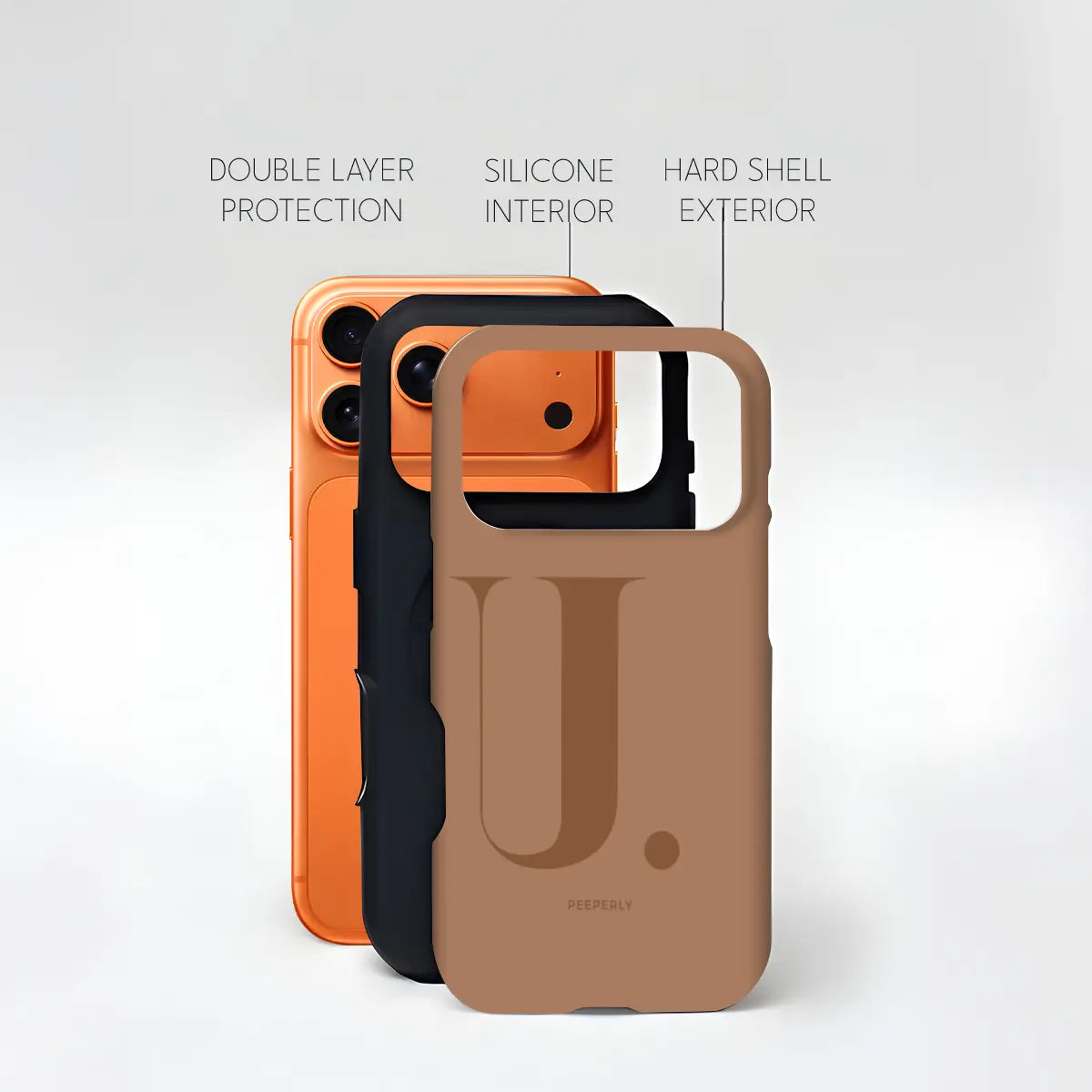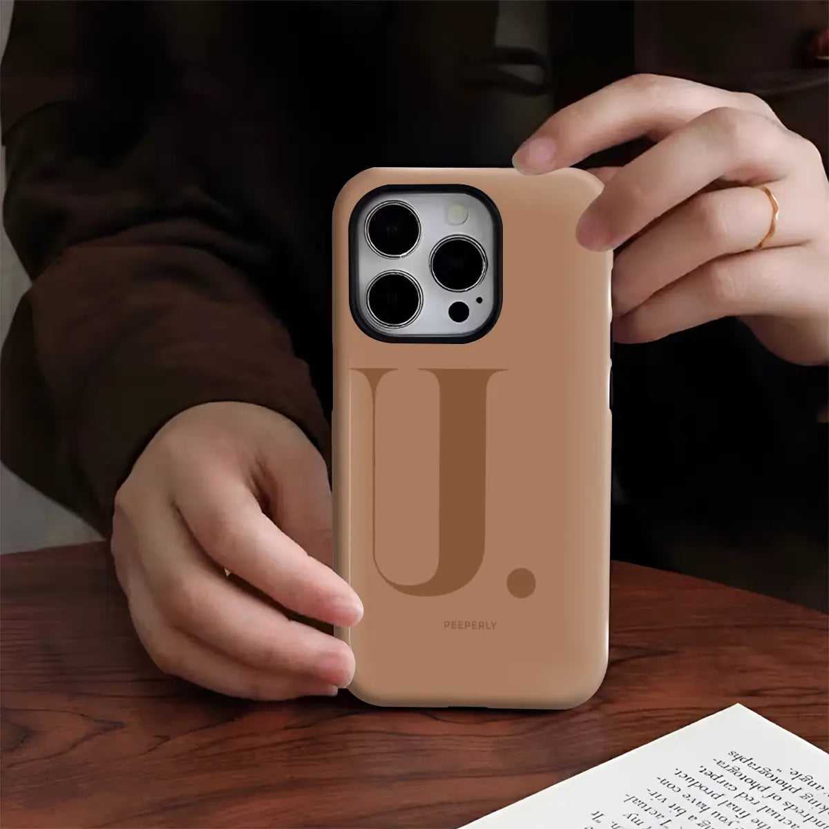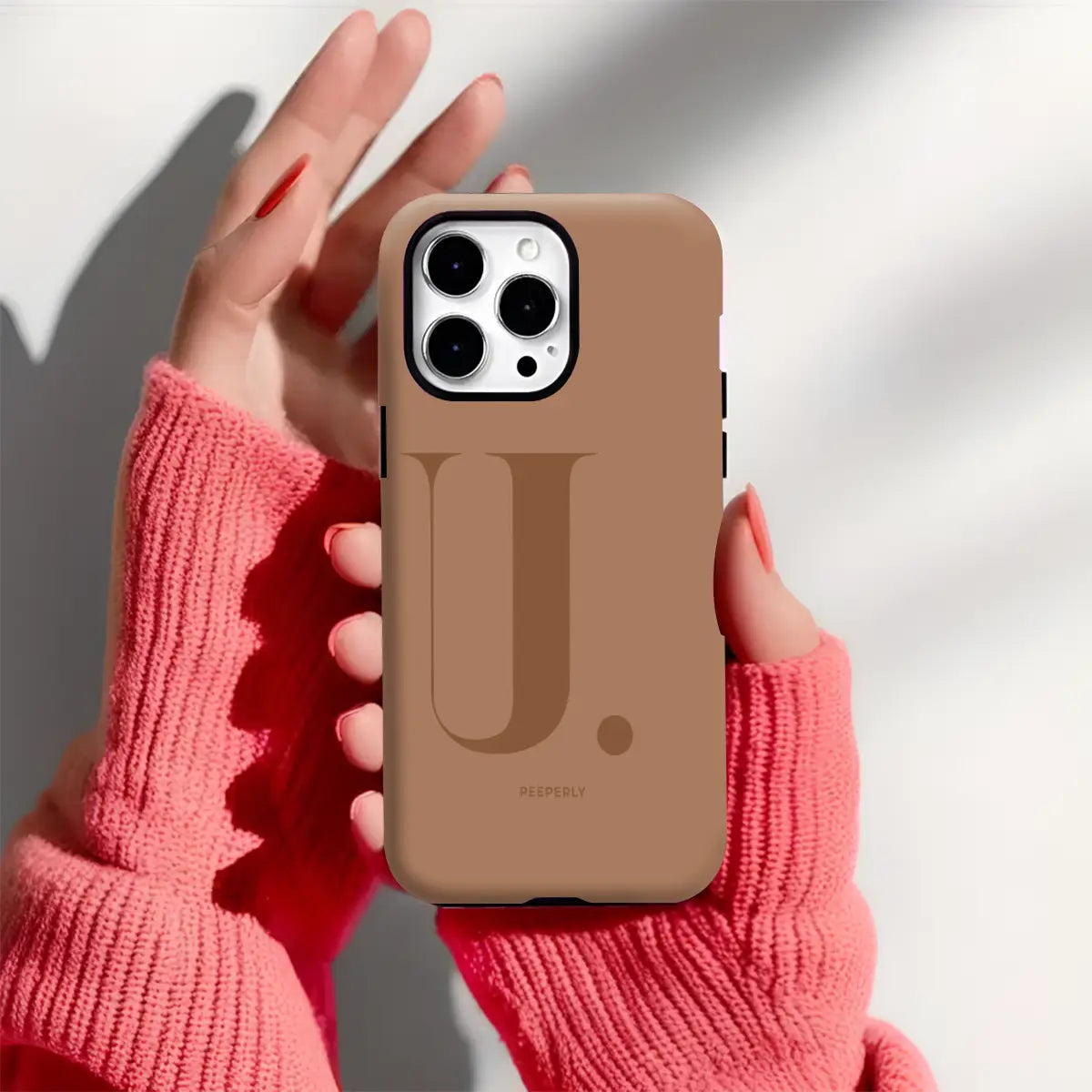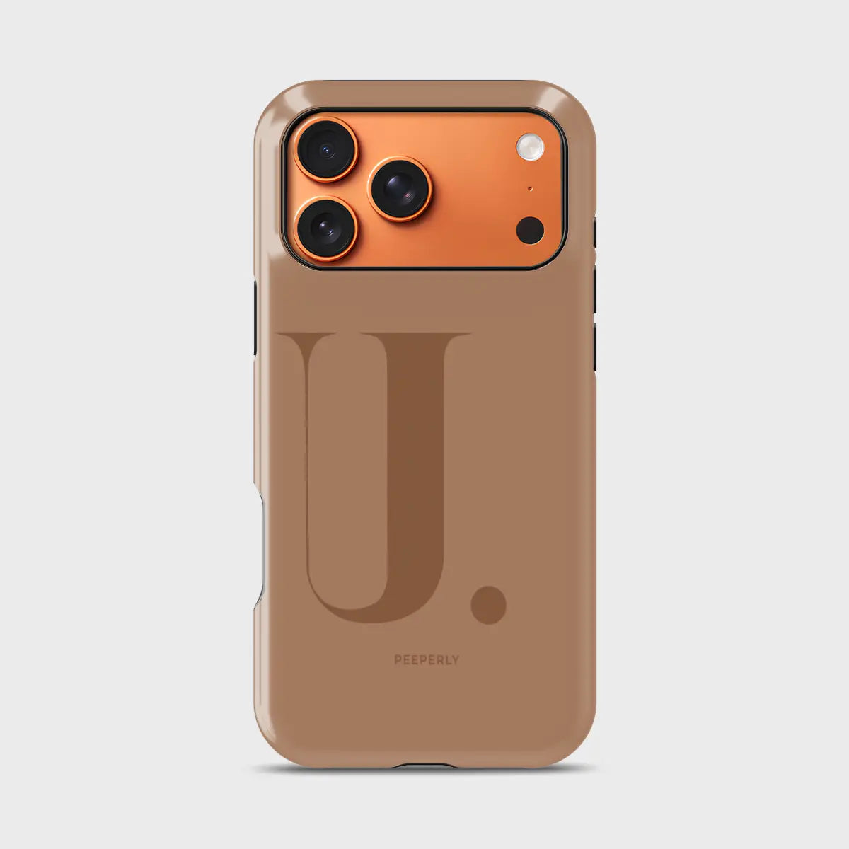 Grounded, modern, and effortlessly refined, the Uriah phone case celebrates understated elegance. Featuring a rich warm-brown finish with a subtly sculpted “U” initial, this design blends tonal depth with minimalist sophistication.