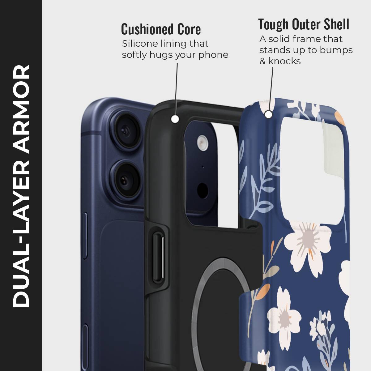 - Double-Layer Protection: Silicon interior cushions impacts + rigid PC exterior shields against drops and scratches.
