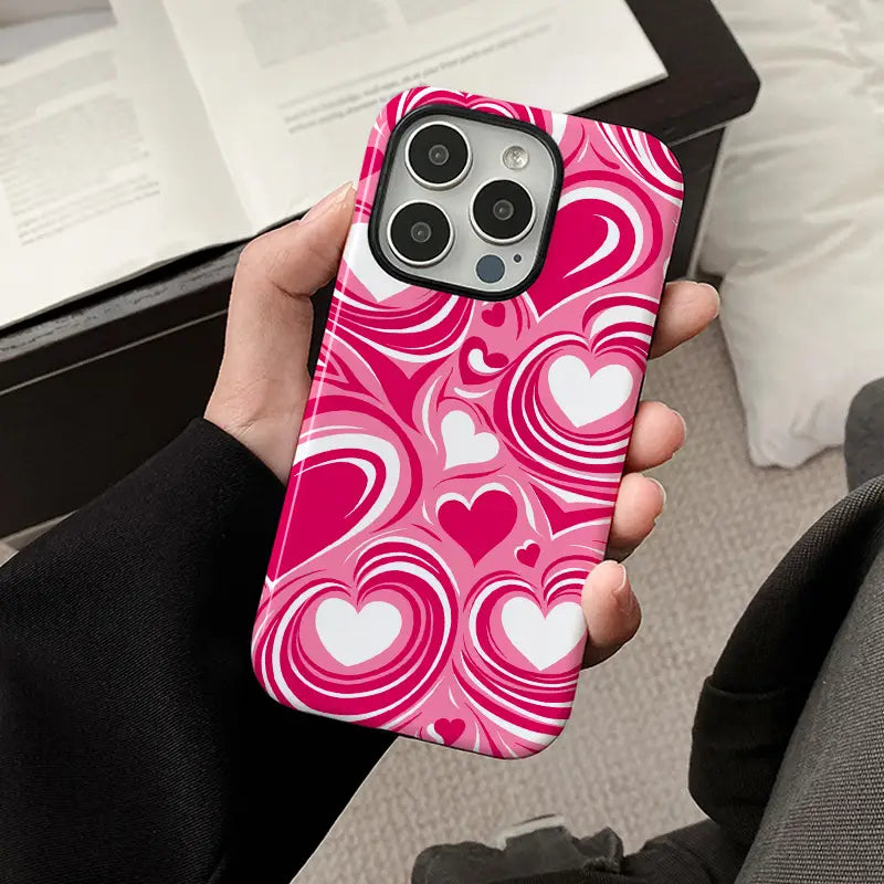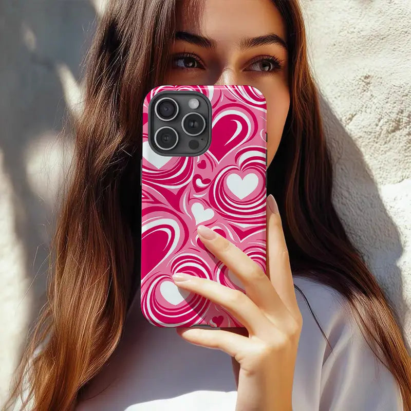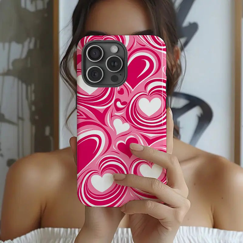 Bright, bold, and bursting with energy — the Vivid Love Case is made for those who wear their heart on their sleeve and their confidence in their hands. With its striking swirl of pinks, reds, and whites, this design radiates playful charm and fearless expression.