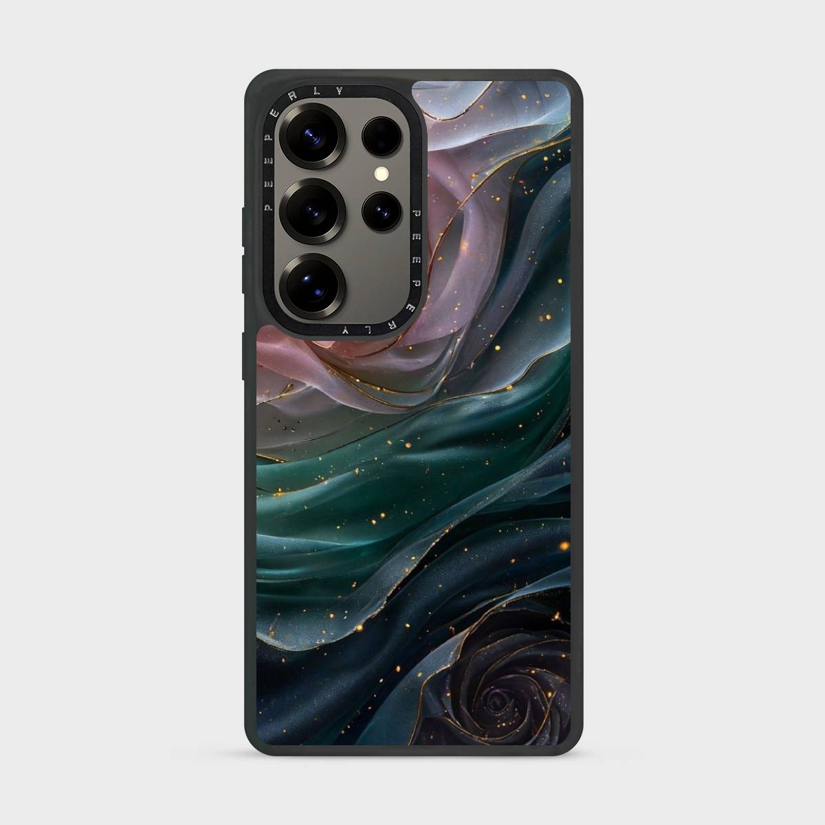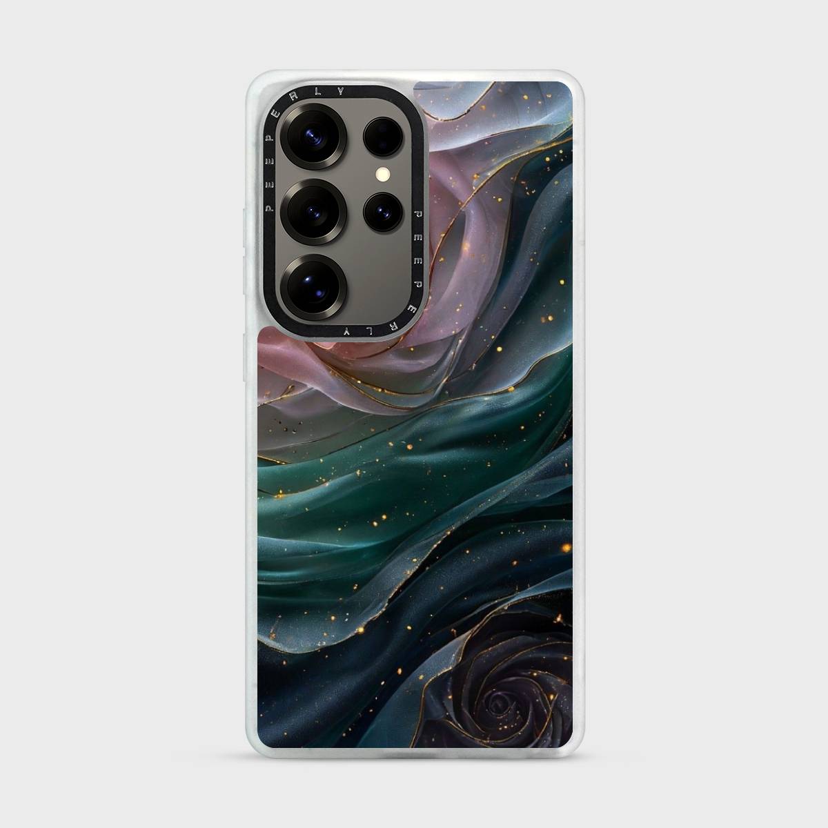 Whispering Silk captures the gentle flow of layered petals and fabric-like waves, drifting through deep emerald and blush tones with delicate gold accents. The design feels soft, romantic, and luxurious—evoking quiet elegance, fluid motion, and timeless beauty.