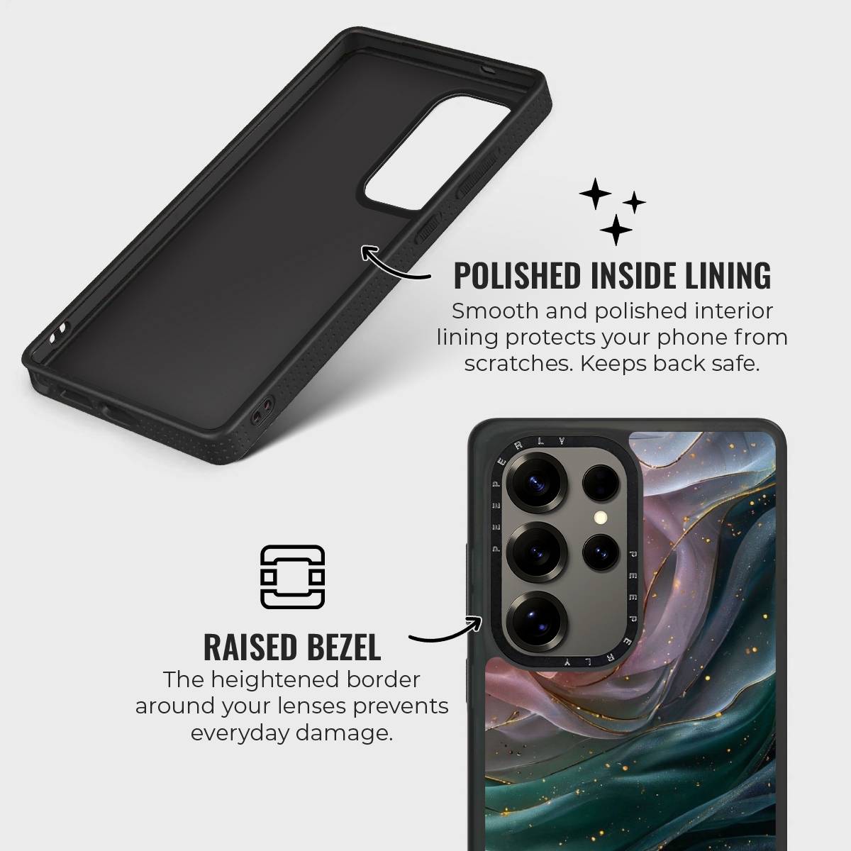 - Polished Inner Lining: Smooth lining shields the phone’s back from scratches.
