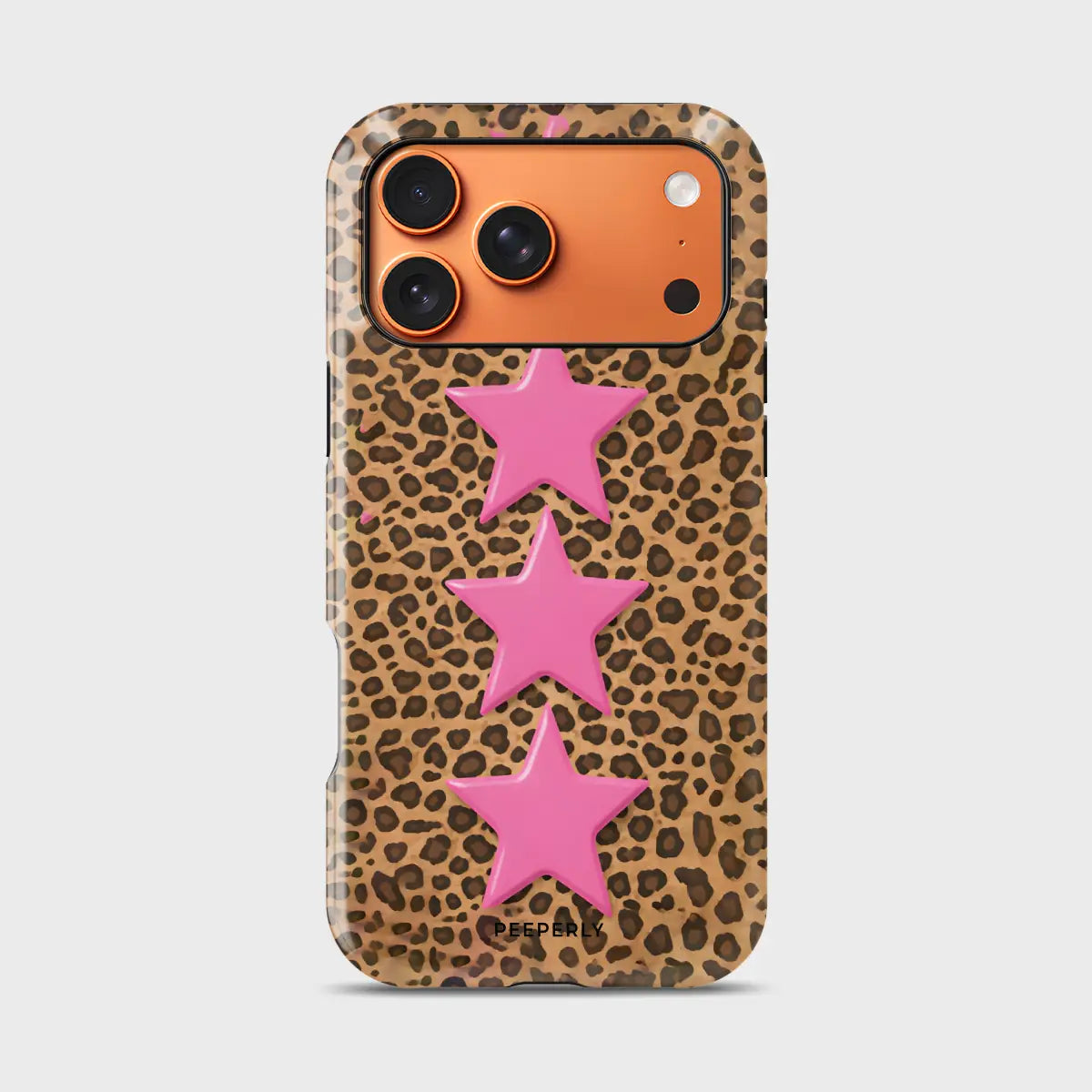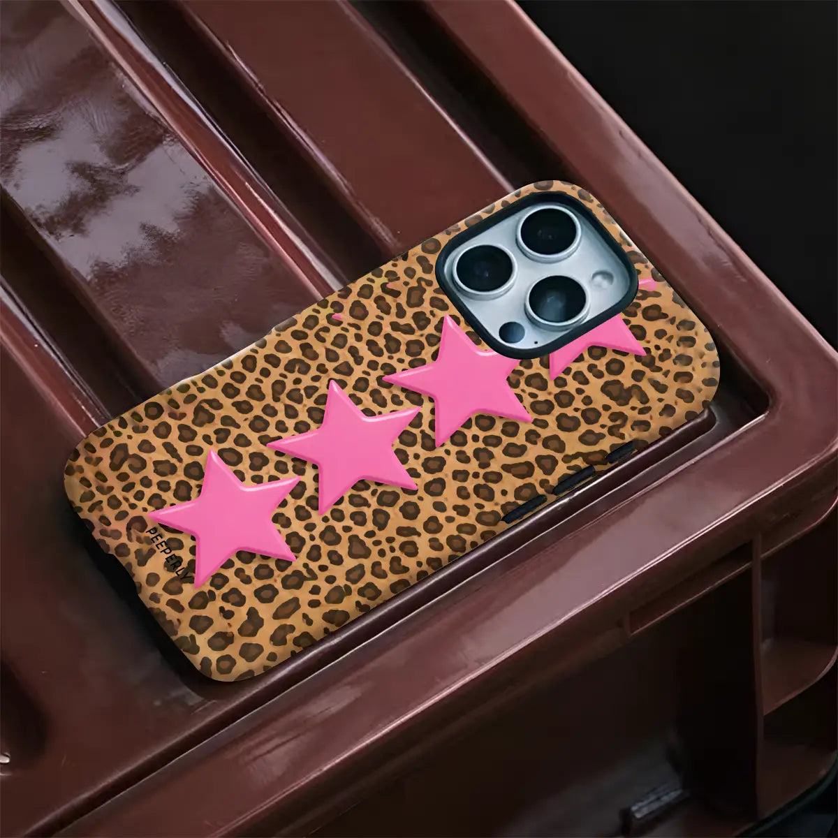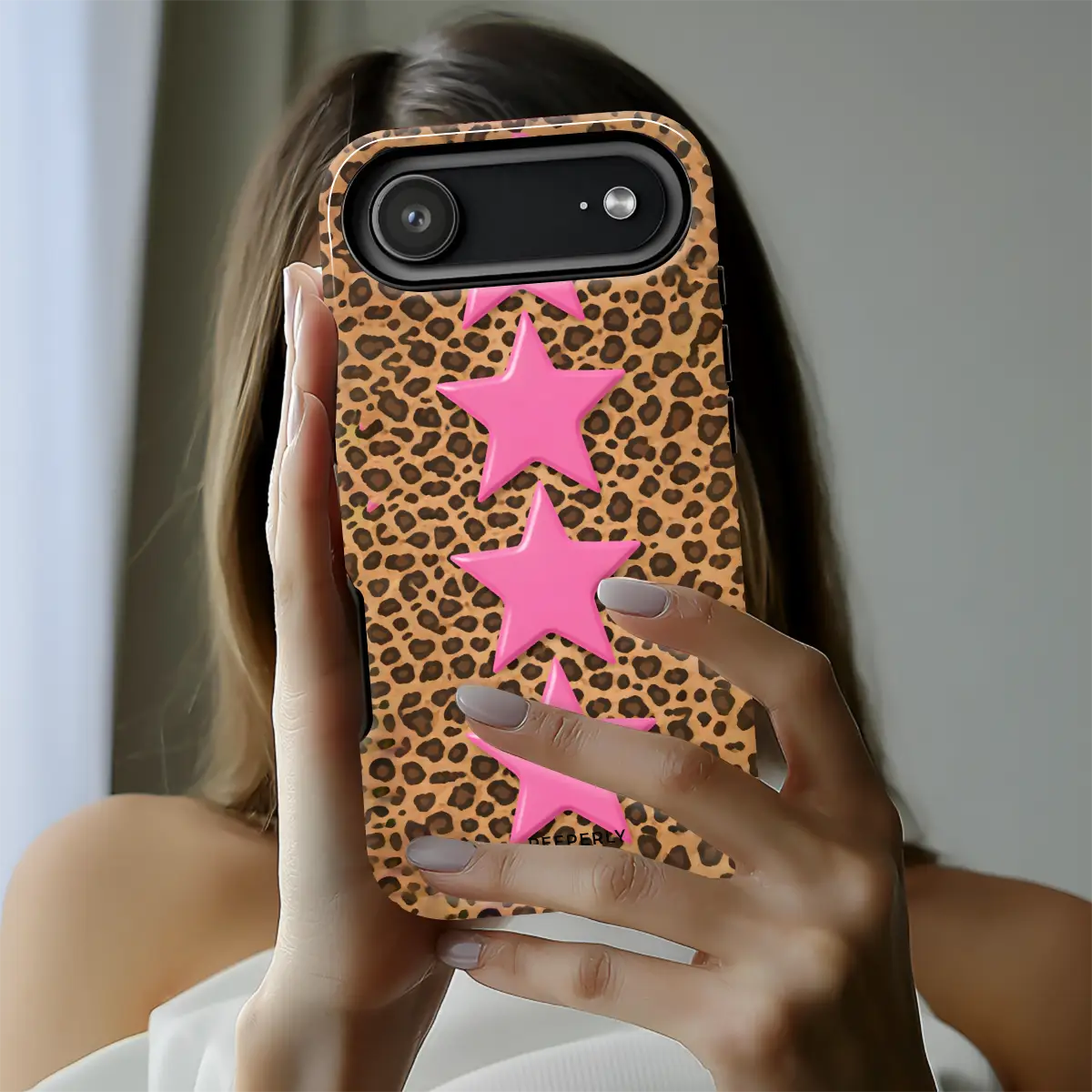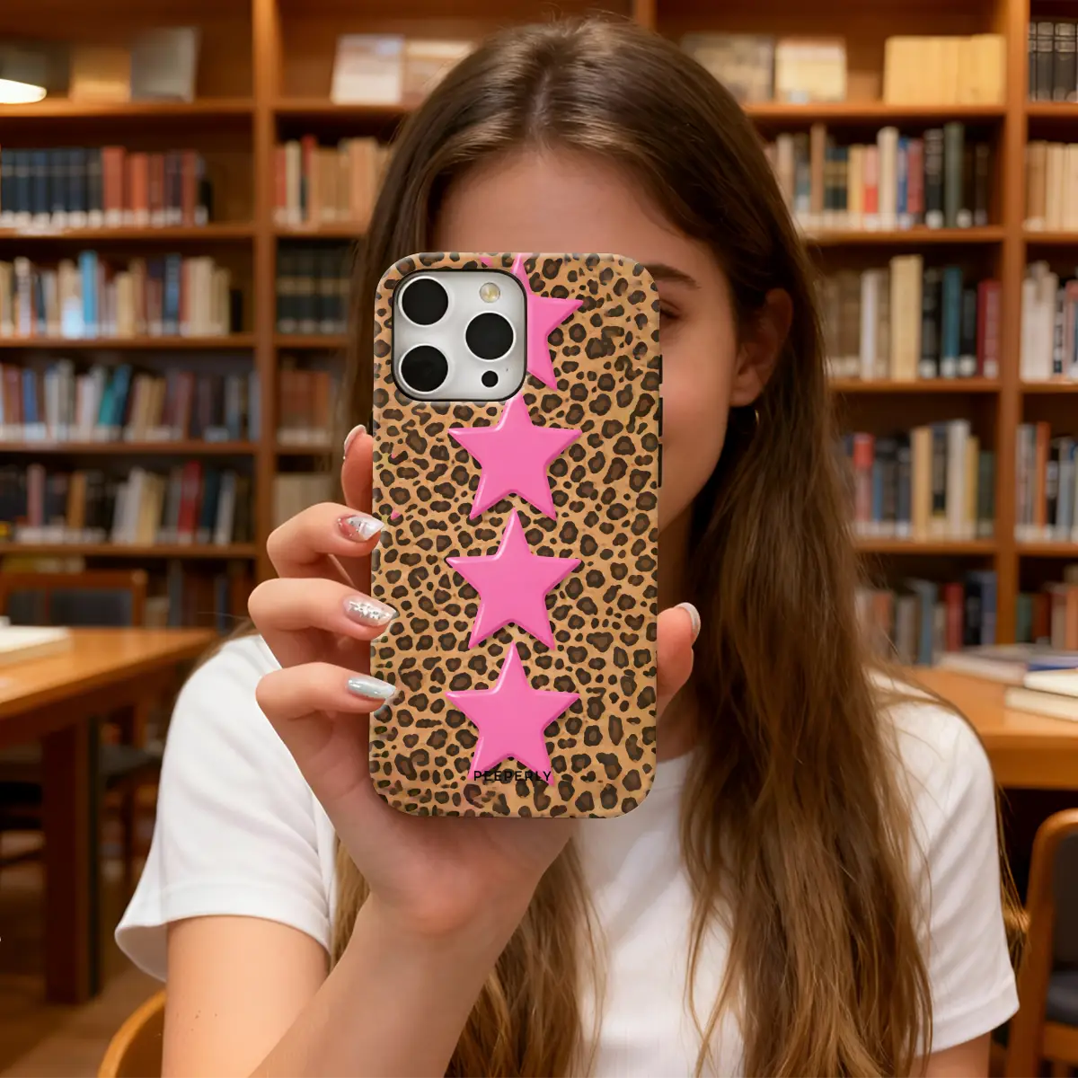 Wild Star combines classic leopard print with glossy pink stars for a look that’s fearless and fun. The contrast between the warm animal pattern and bold star accents creates a statement design that feels both wild and playful—perfect for standing out without holding back.