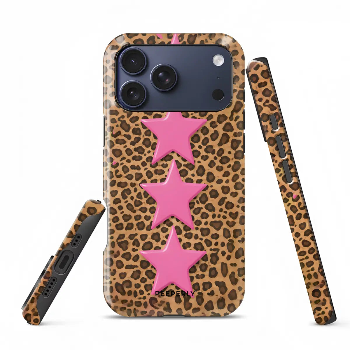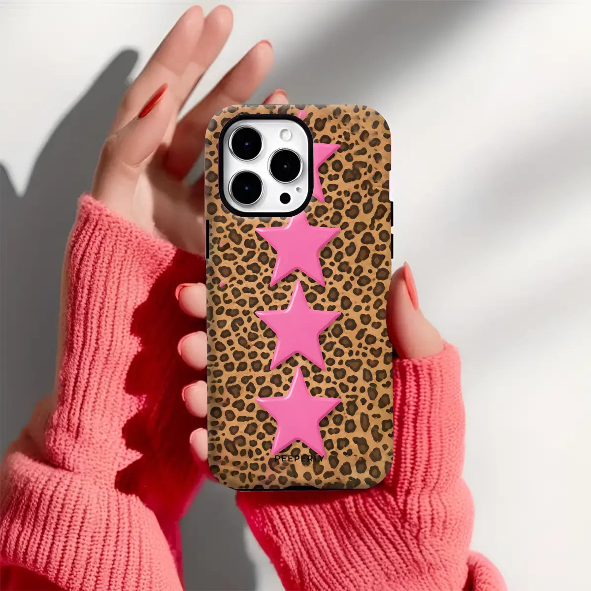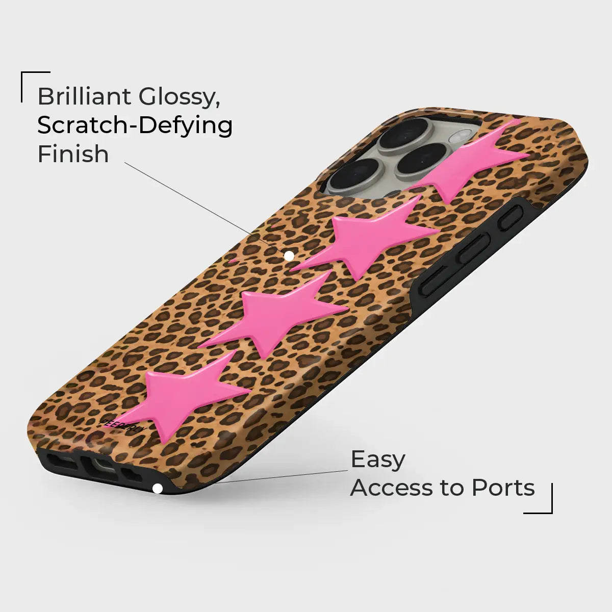 Wild Star combines classic leopard print with glossy pink stars for a look that’s fearless and fun. The contrast between the warm animal pattern and bold star accents creates a statement design that feels both wild and playful—perfect for standing out without holding back.