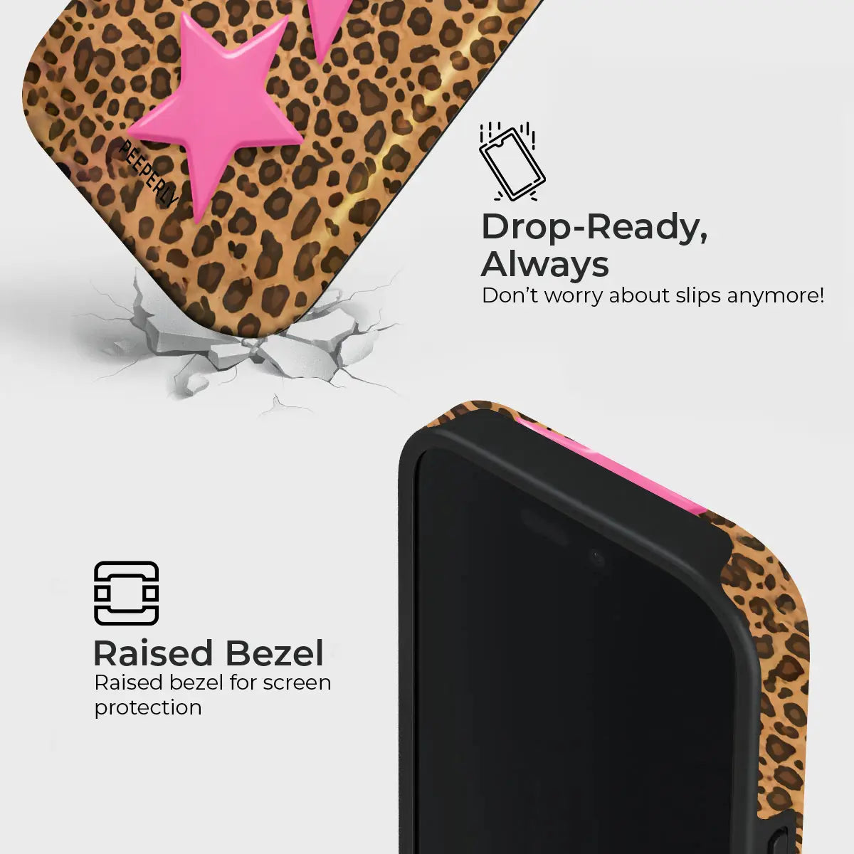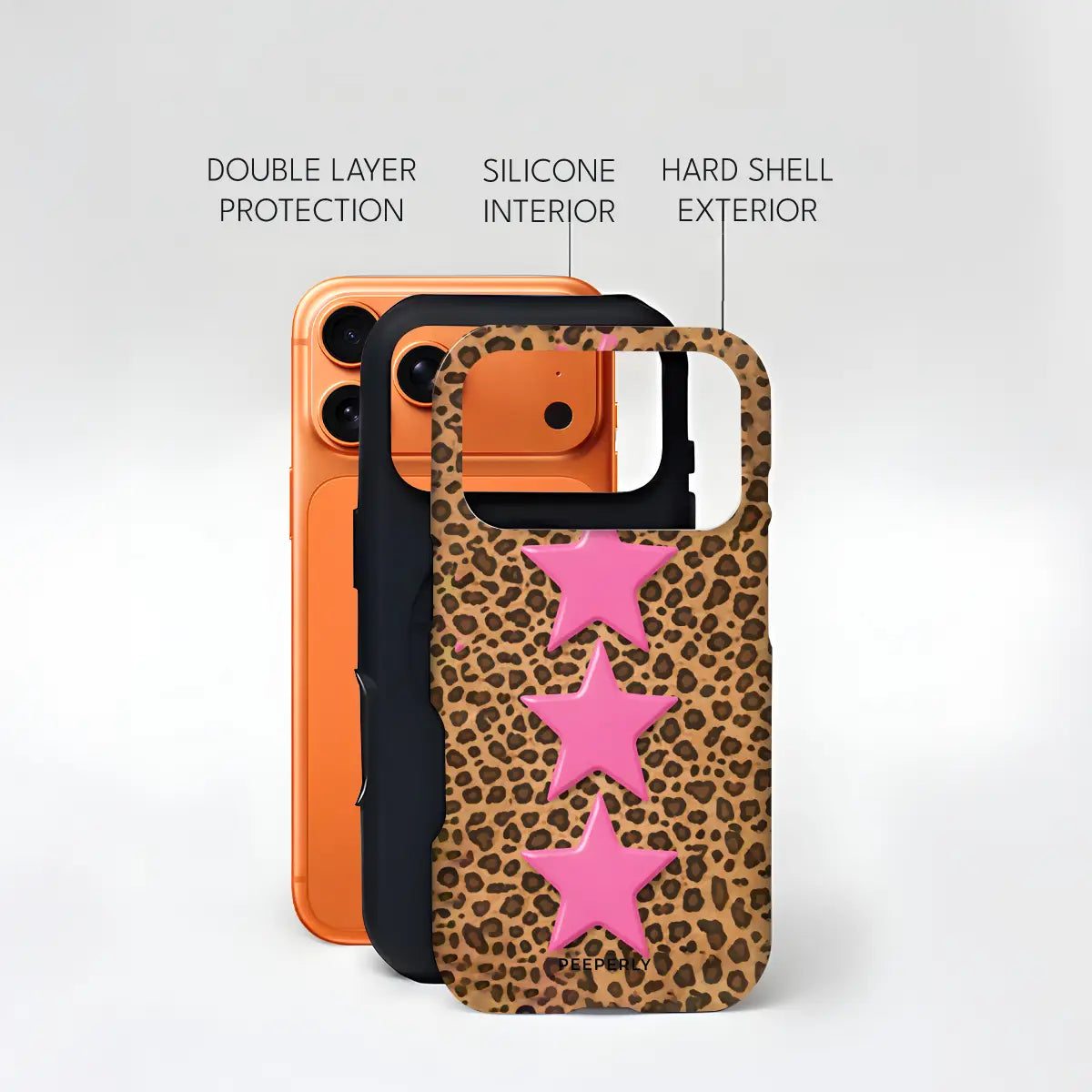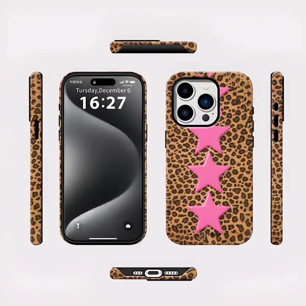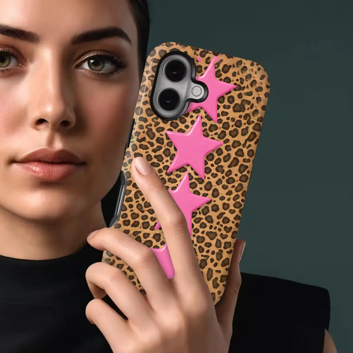 Wild Star combines classic leopard print with glossy pink stars for a look that’s fearless and fun. The contrast between the warm animal pattern and bold star accents creates a statement design that feels both wild and playful—perfect for standing out without holding back.