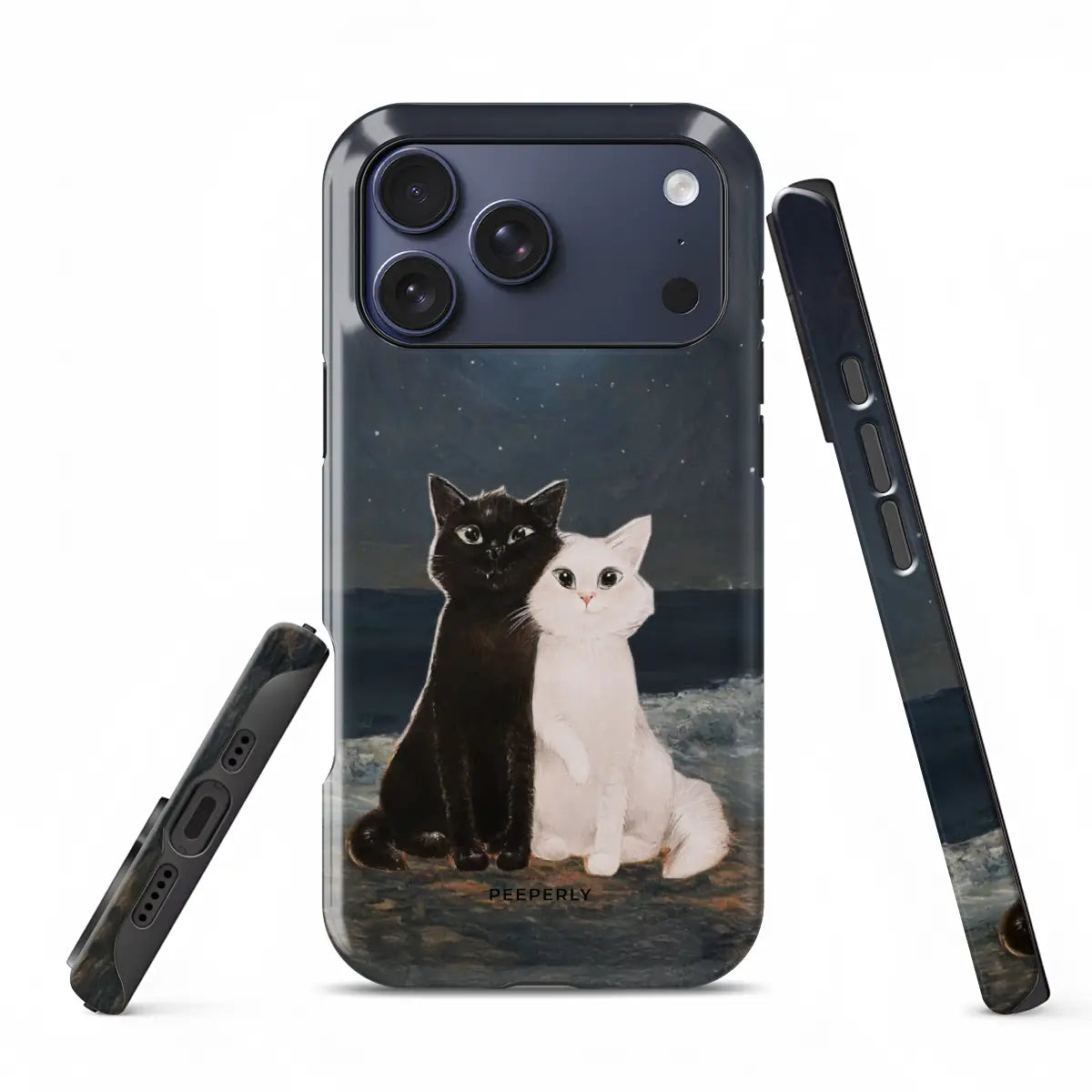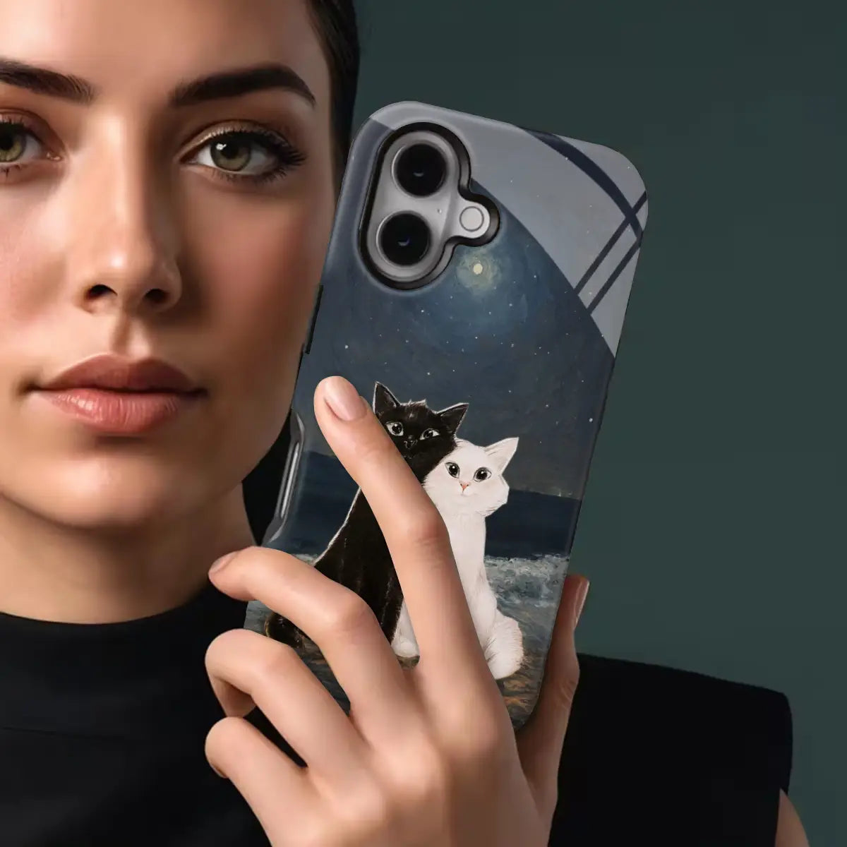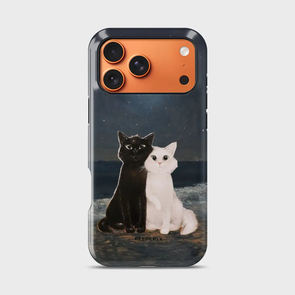 A charming and symbolic design featuring a black and white cat sitting side by side under a serene, starry night sky. Representing balance, harmony, and opposites in perfect unity, this case blends minimal elegance with a cozy, whimsical touch—perfect for cat lovers who adore meaningful and stylish designs.
