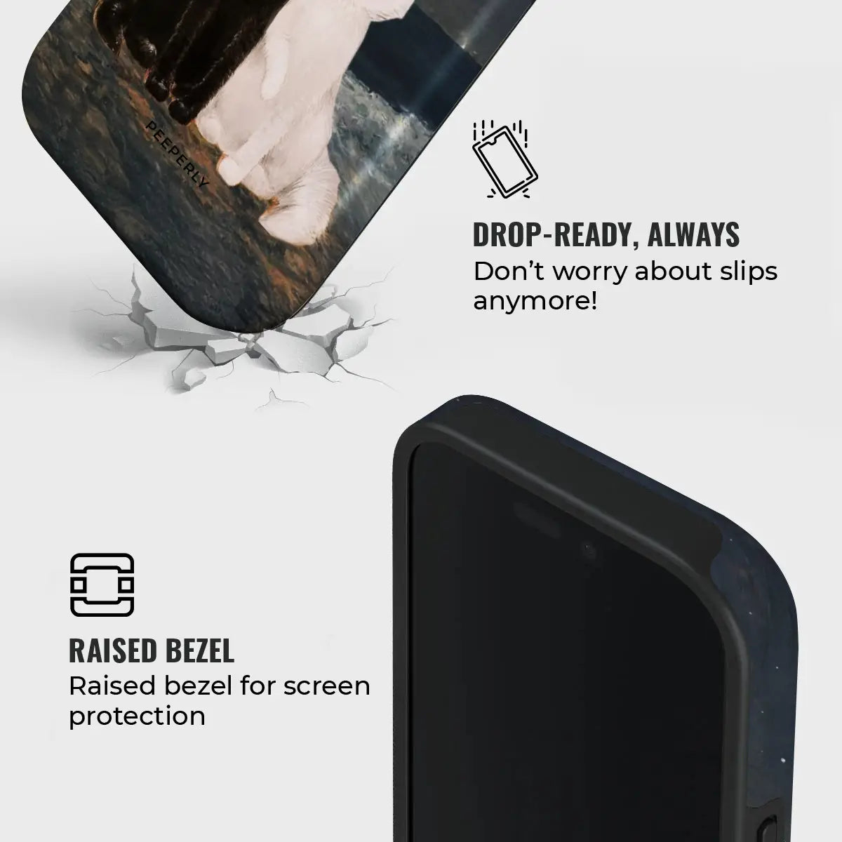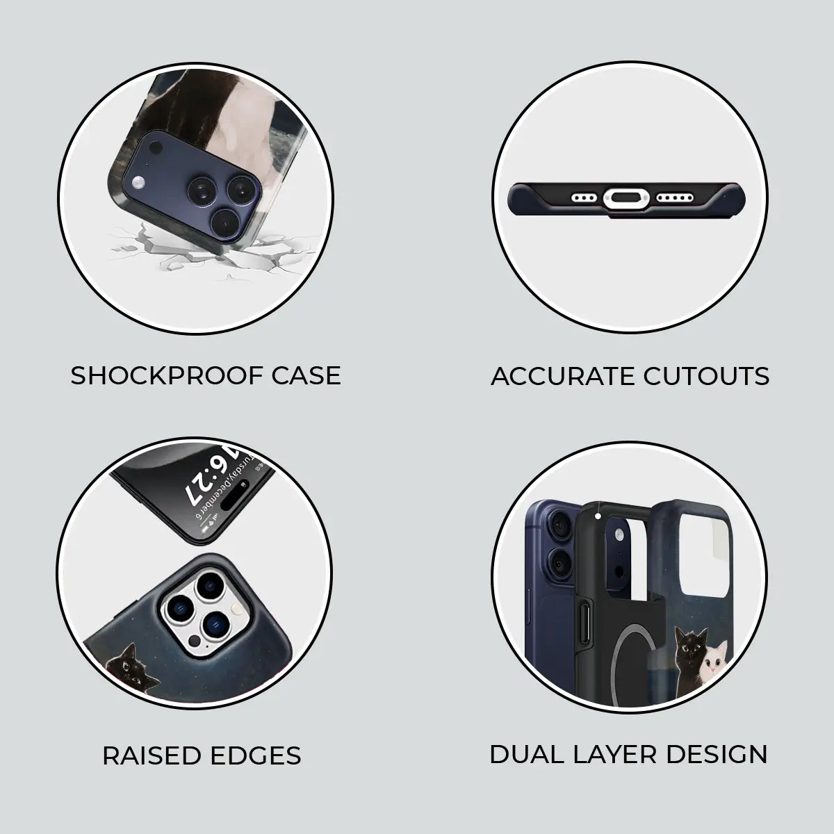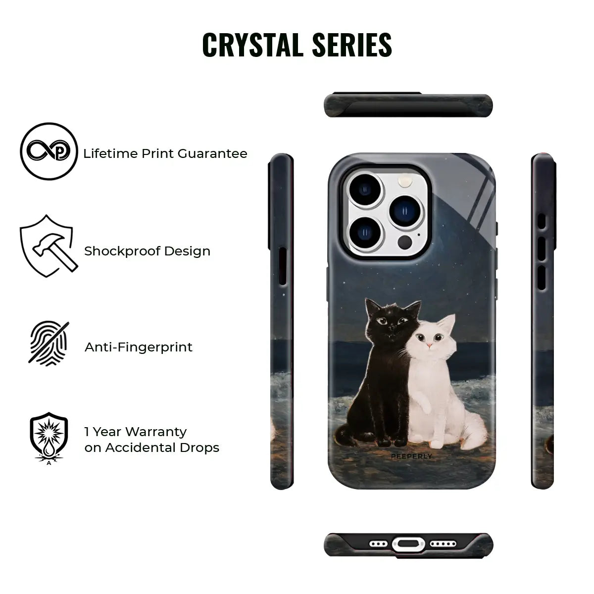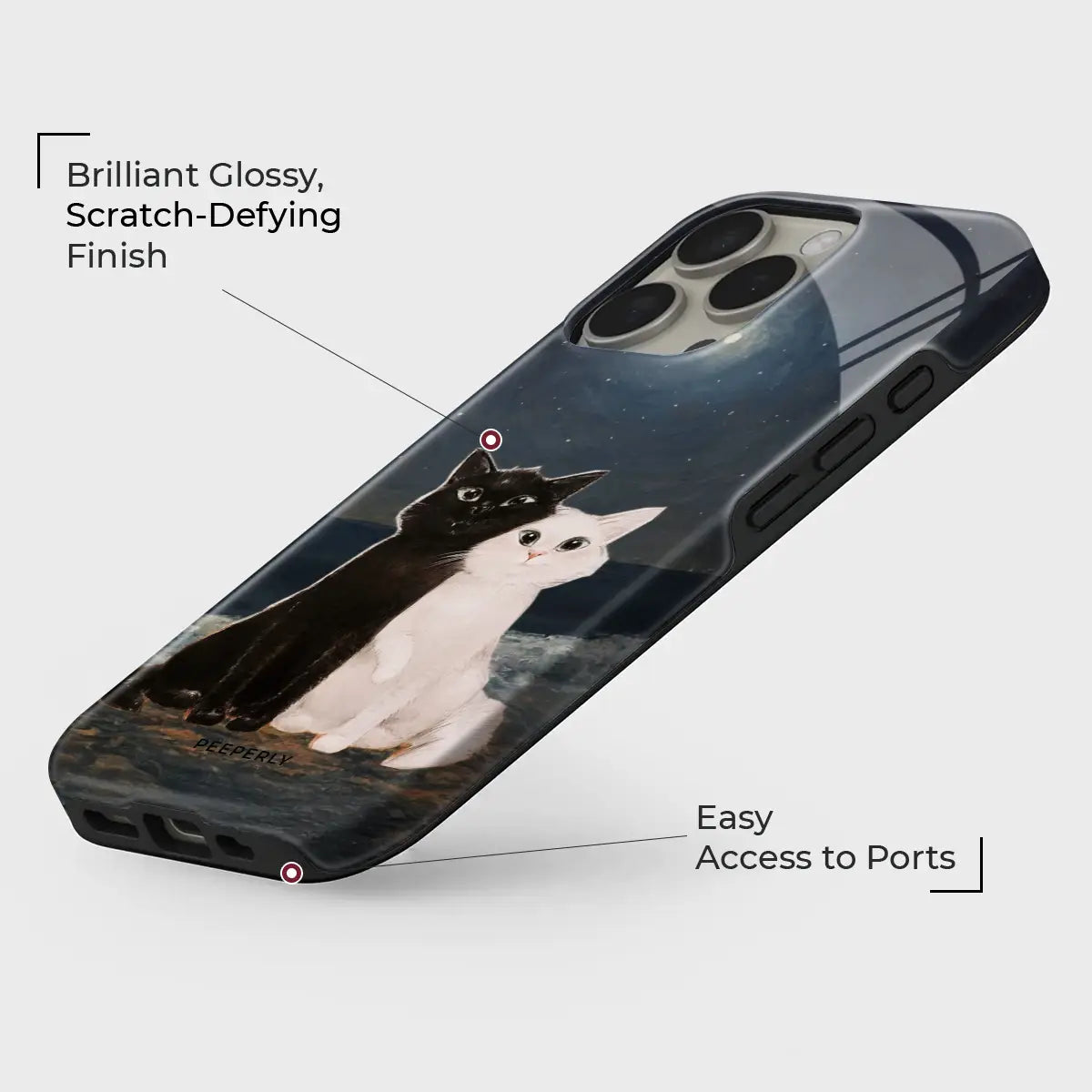 A charming and symbolic design featuring a black and white cat sitting side by side under a serene, starry night sky. Representing balance, harmony, and opposites in perfect unity, this case blends minimal elegance with a cozy, whimsical touch—perfect for cat lovers who adore meaningful and stylish designs.