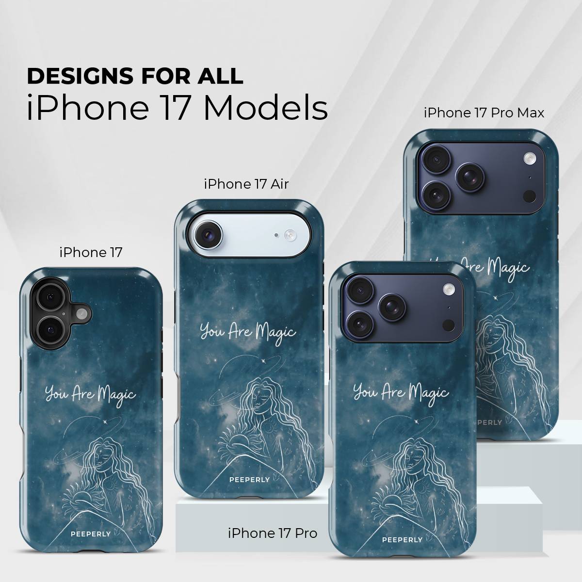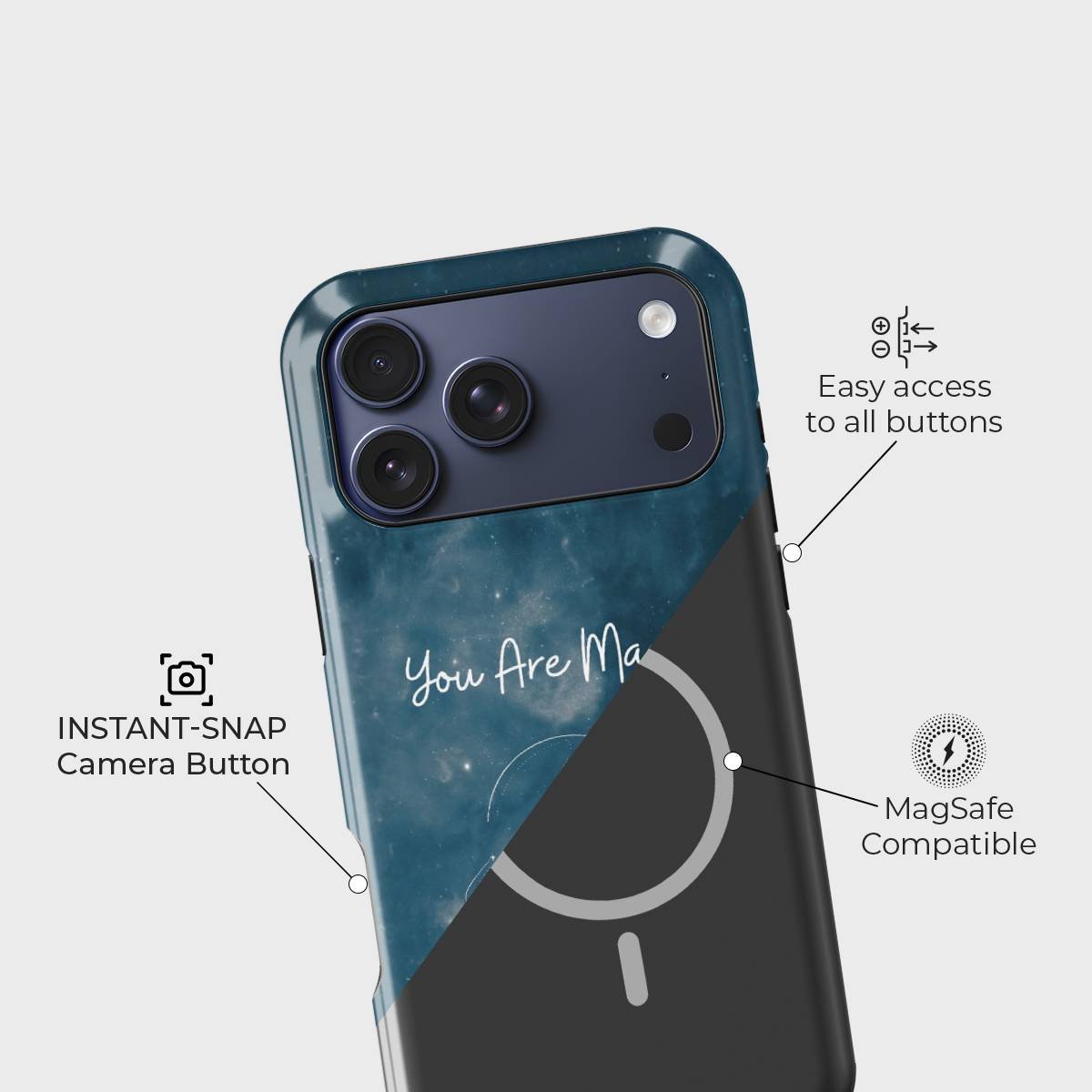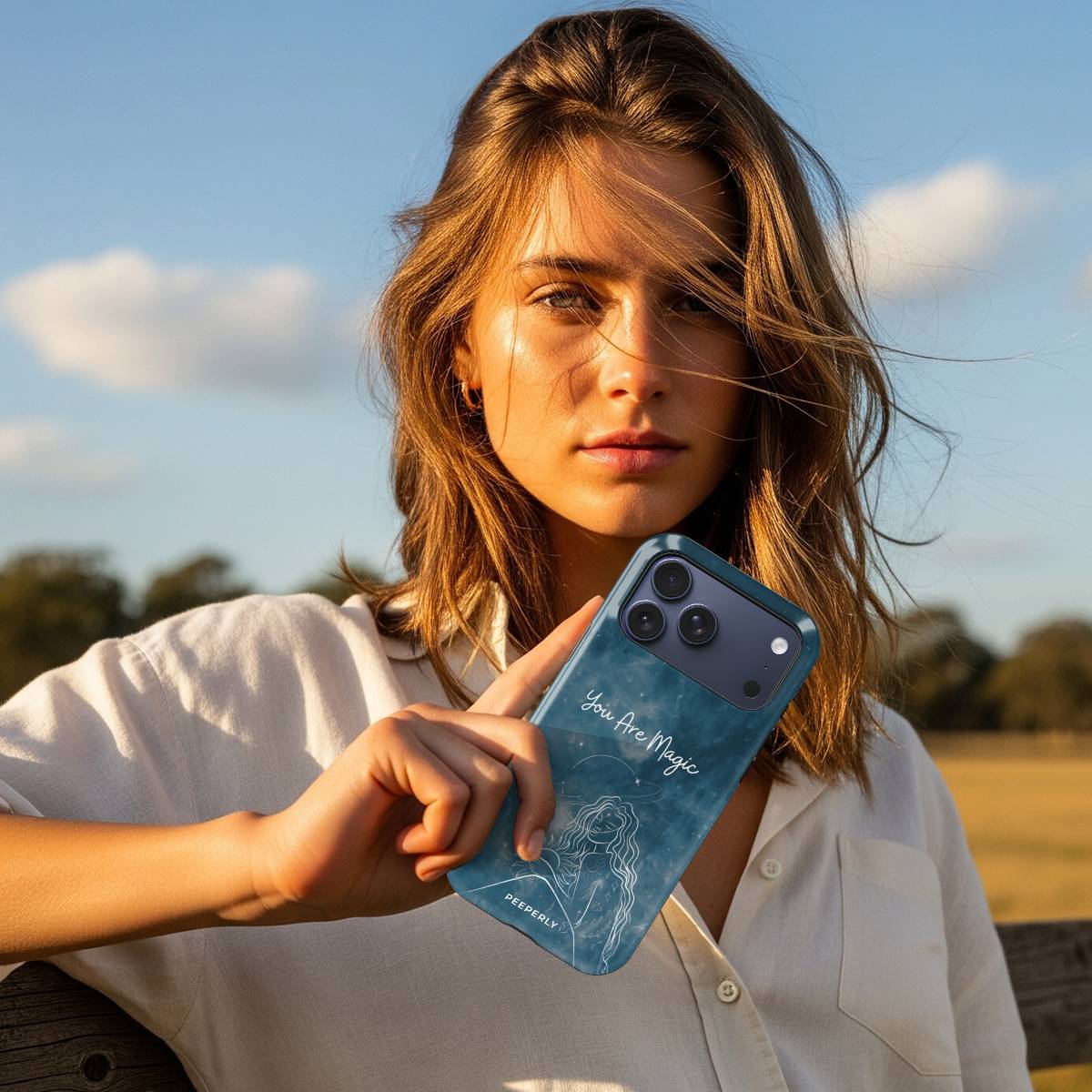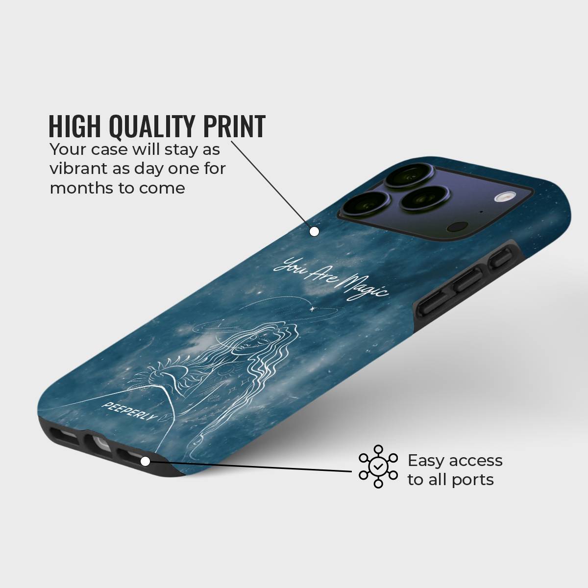 Let your phone reflect the magic you hold inside with the You Are Magic case — a celestial design that celebrates inner light, cosmic beauty, and quiet strength. Set against a deep galaxy-blue background, this case features a delicate white line illustration of a serene celestial woman surrounded by stars, planets, and a glowing sun — a reminder that you are both grounded and infinite.